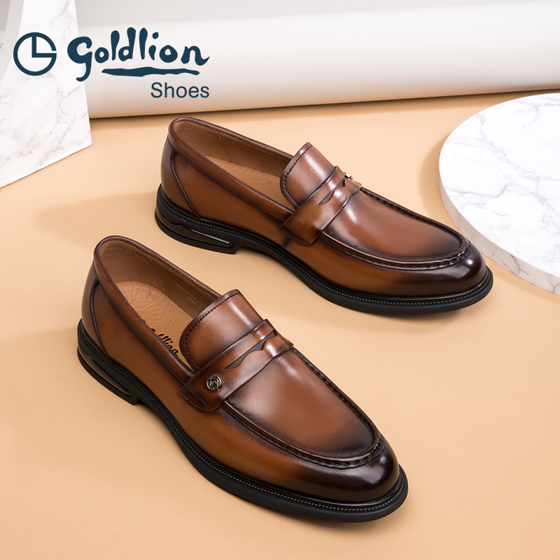 金利来男鞋2025新款时尚简约擦色一脚蹬商务皮鞋乐福鞋时尚舒适