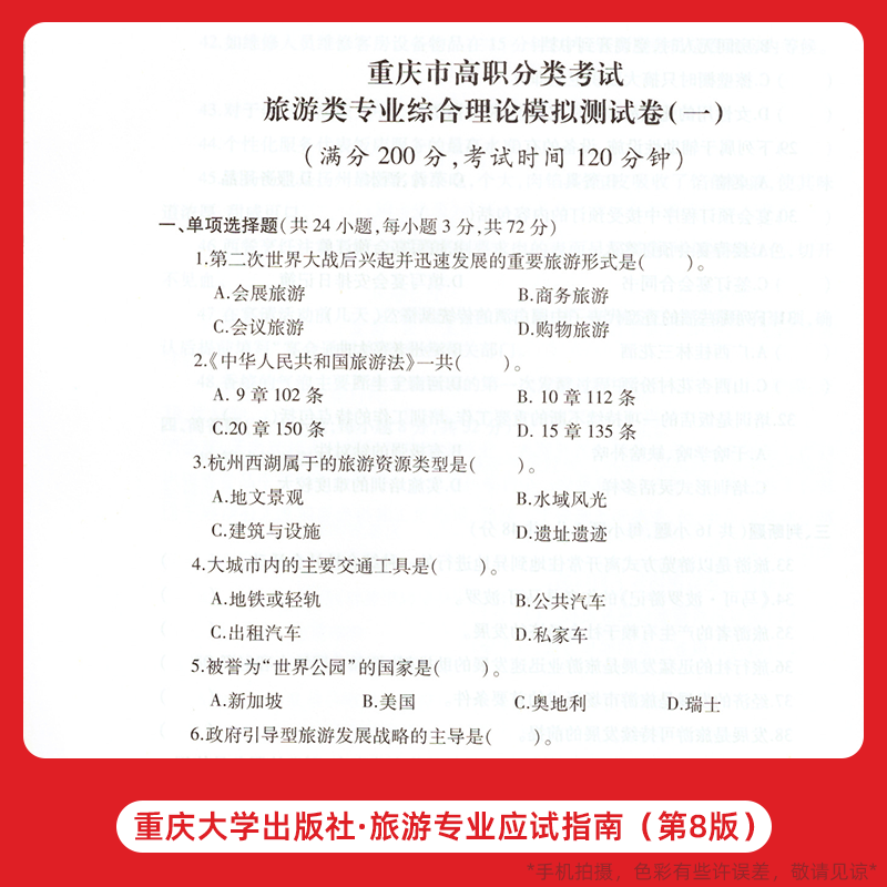 2026年重庆中职生对口升学考试总复习资料教材旅游专业模拟历年真题试卷重庆市春招分类高考高职单招考试真题中专升大专本科2025
