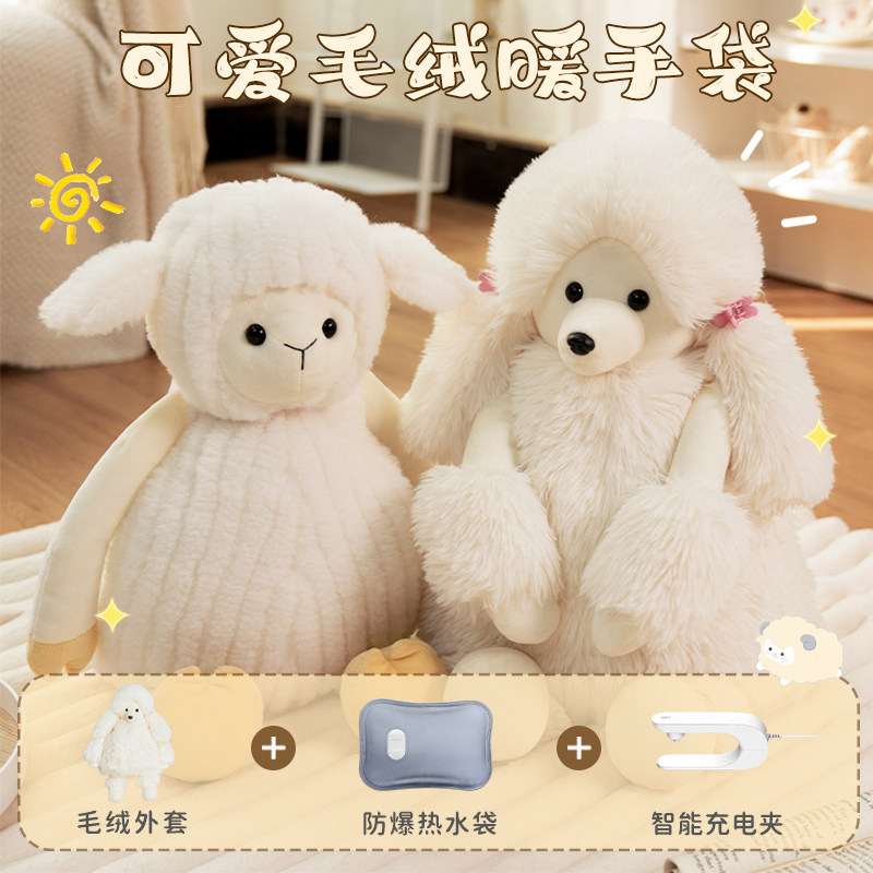 寒冬暖手热水袋防爆充电款暖被窝肚子可爱毛绒2025新款网红贵宾犬