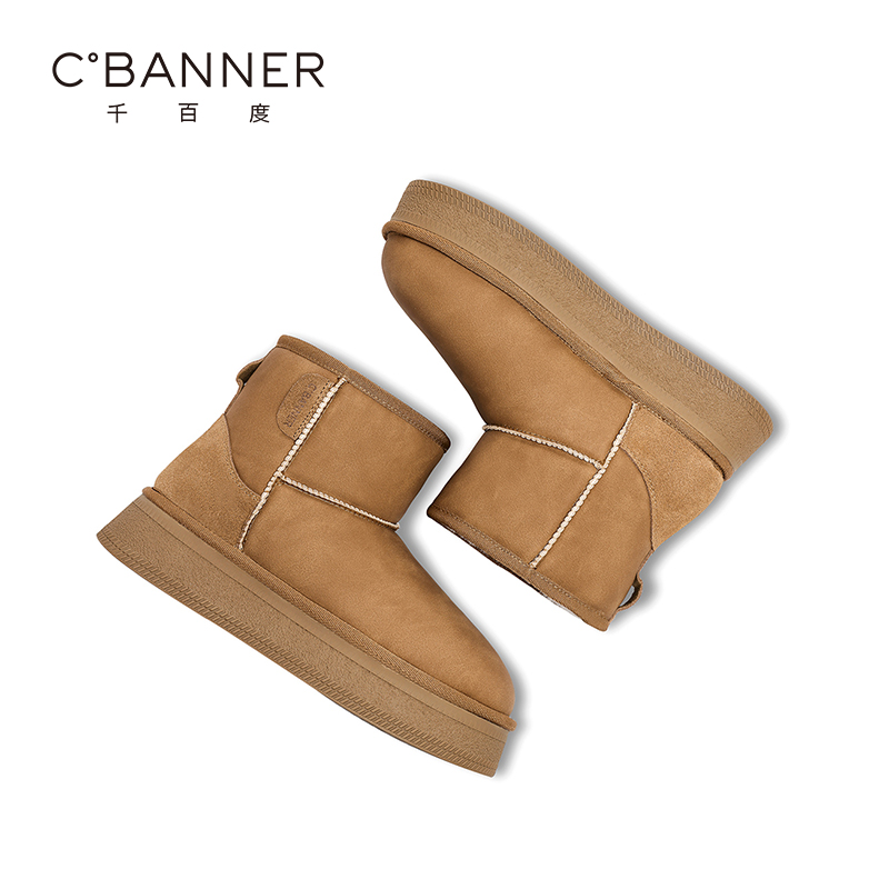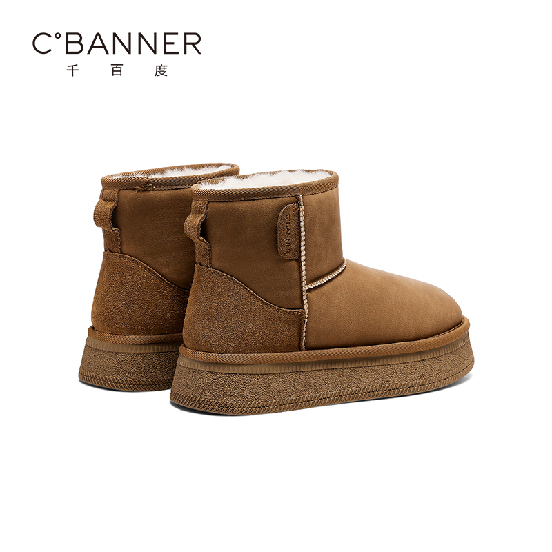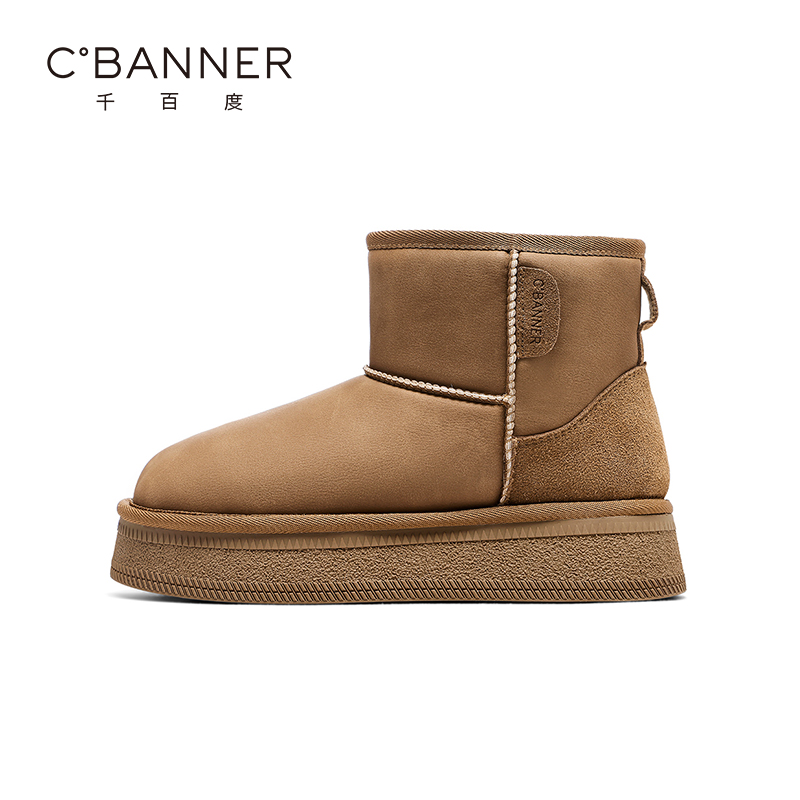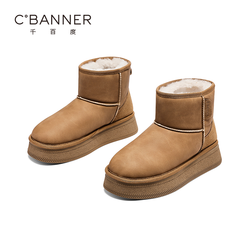 千百度厚底雪地靴冬季新款女靴保暖加绒加厚棉鞋短靴舒适面包鞋子