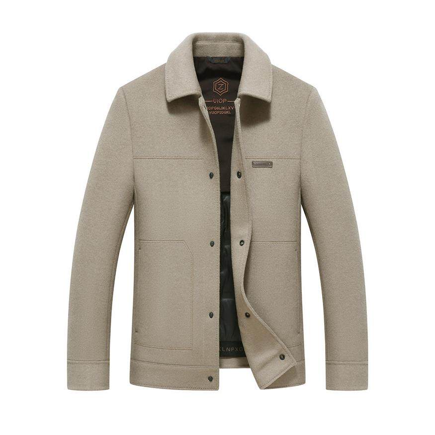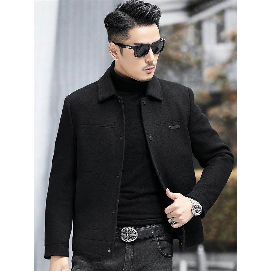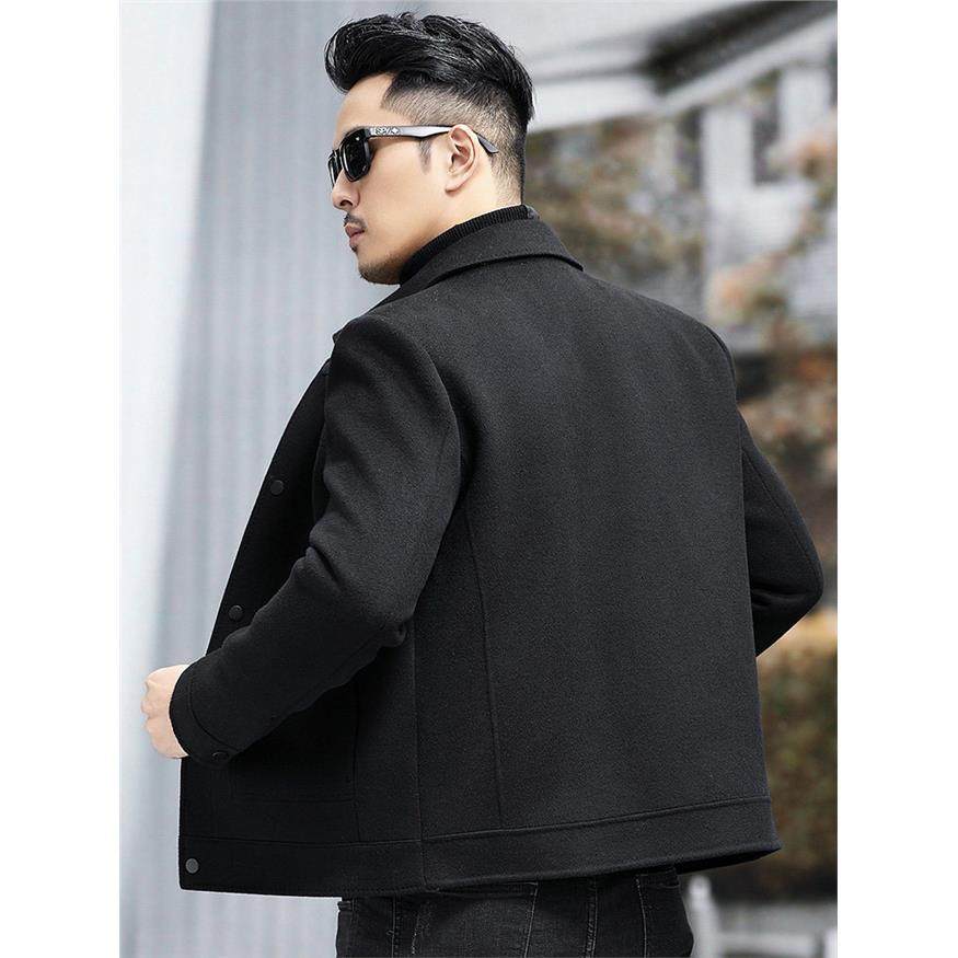 罗蒙高档毛呢夹克中年男士短款羊毛大衣冬季加厚鹅绒内胆羊毛外套