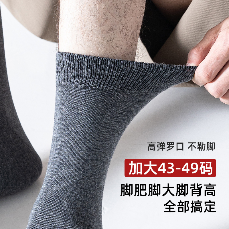 袜子男纯棉大码45大号48秋冬季长筒袜防臭吸汗46中筒44胖脚47长袜