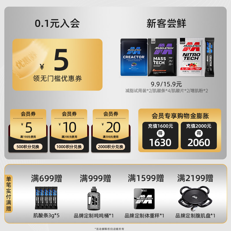 肌肉科技进口锌镁肌酸肌酸一水肌酸300g非氮泵健身耐力官方旗舰店