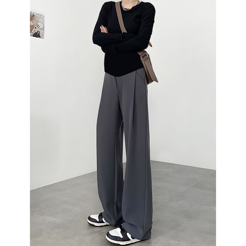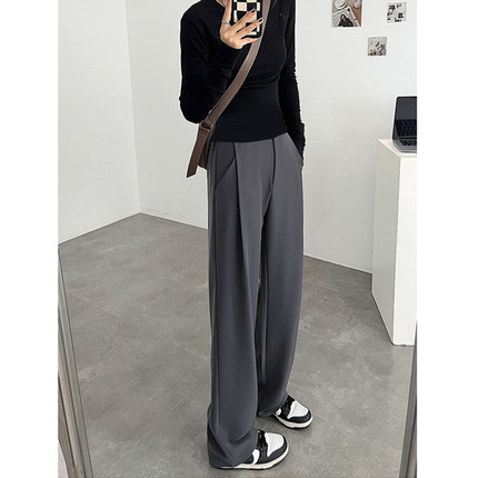 孕妇西装裤春夏外穿2025新款灰色阔腿打底裤垂感休闲拖地裤子春装