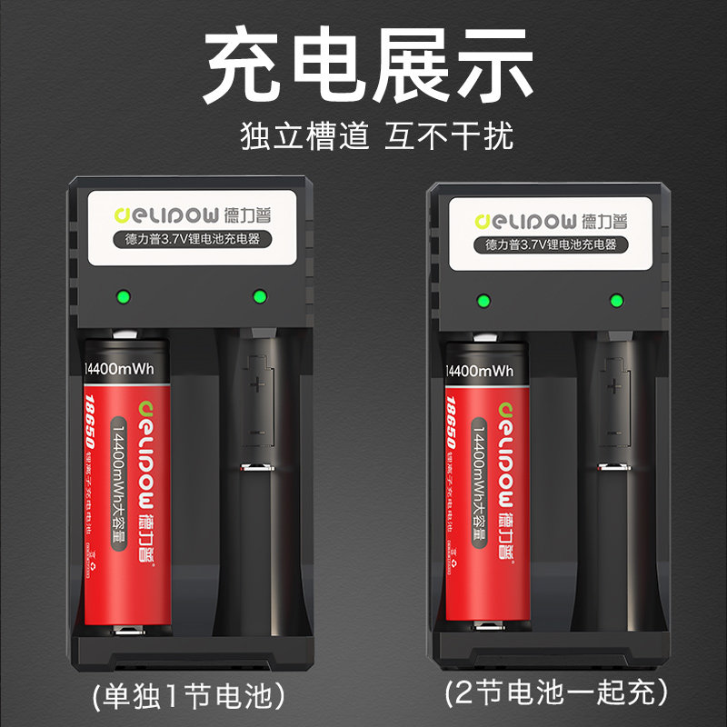 德力普18650锂电池大容量3.7V强光手电筒小风扇头灯4.2v可充电器