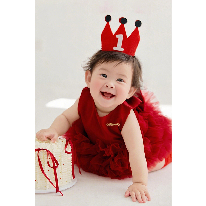 儿童摄影服装生日主题红色公主裙女孩影楼拍照道具宝宝写真周岁照