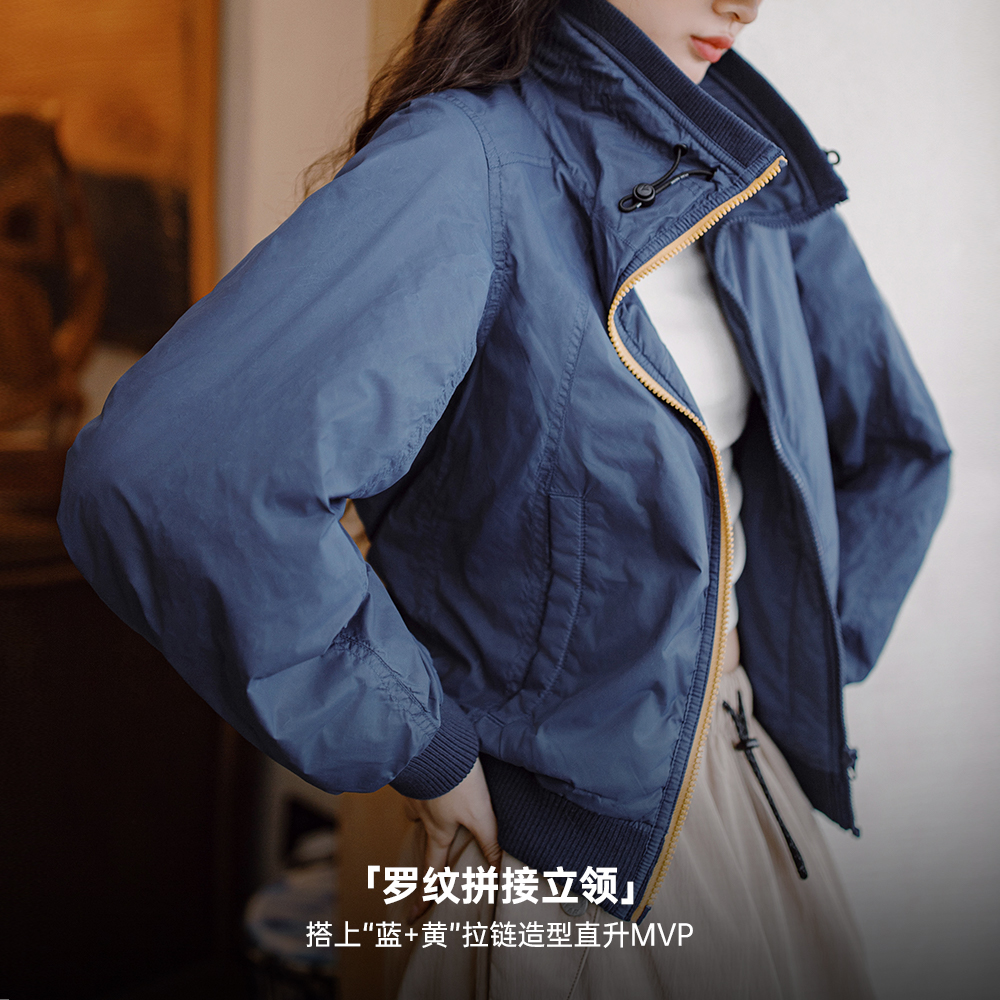 马登罗纹立领夹克美式棒球服夹棉收腰外套百搭加厚保暖棉衣秋冬女