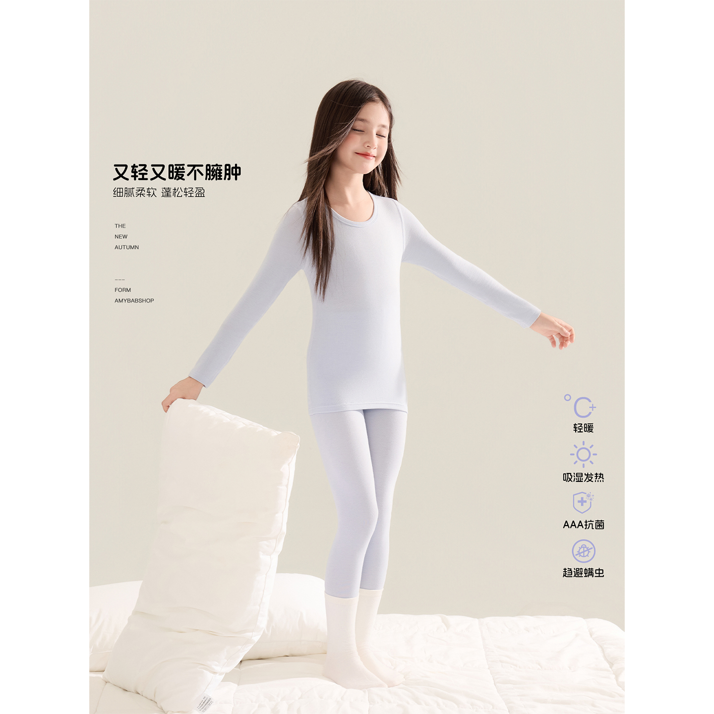 Amybaby女童套装秋季2025新款高弹修身保暖舒适儿童内衣家居服
