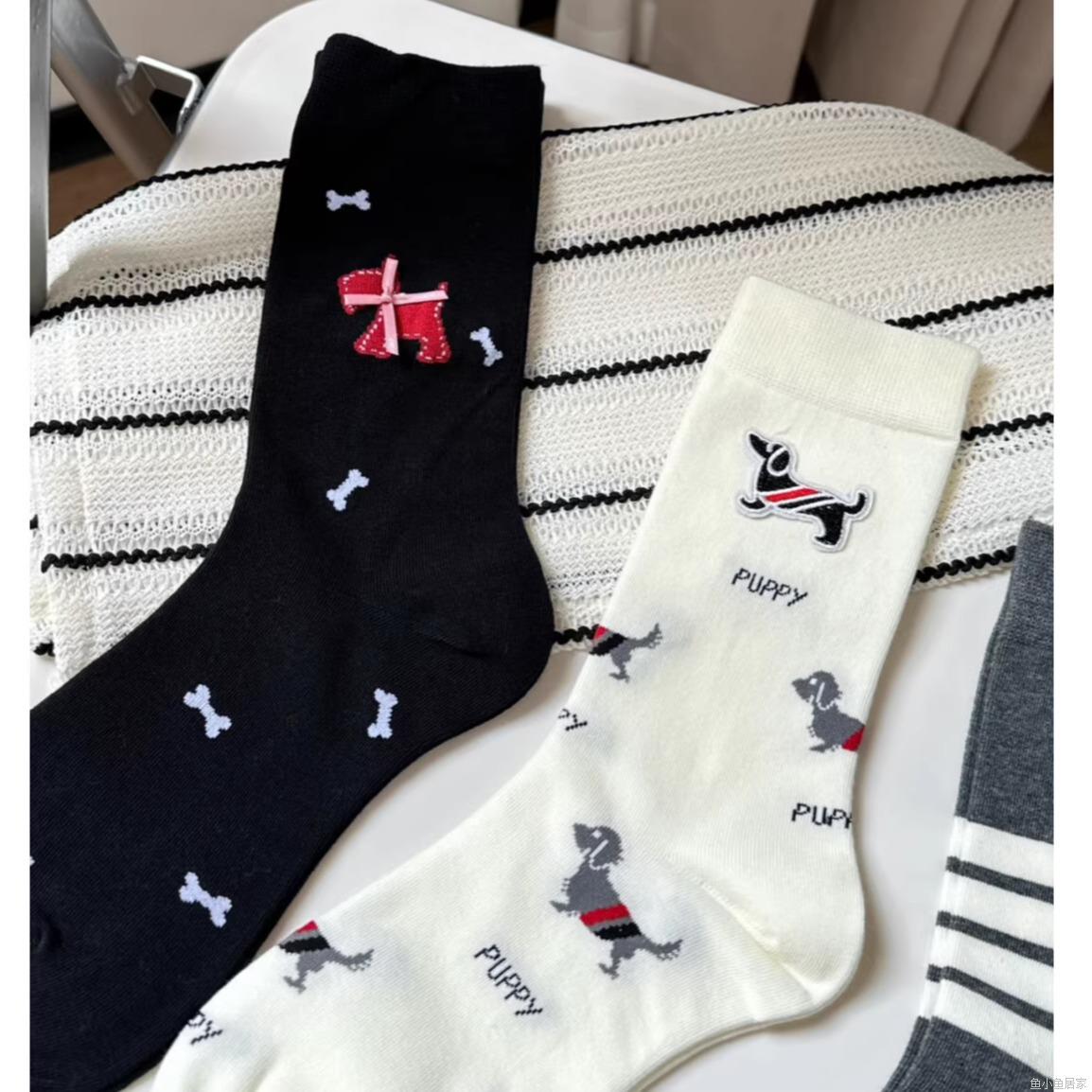 学院风女袜可爱小狗中筒潮袜早秋欧货新款情侣袜学院风简约堆堆袜