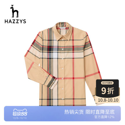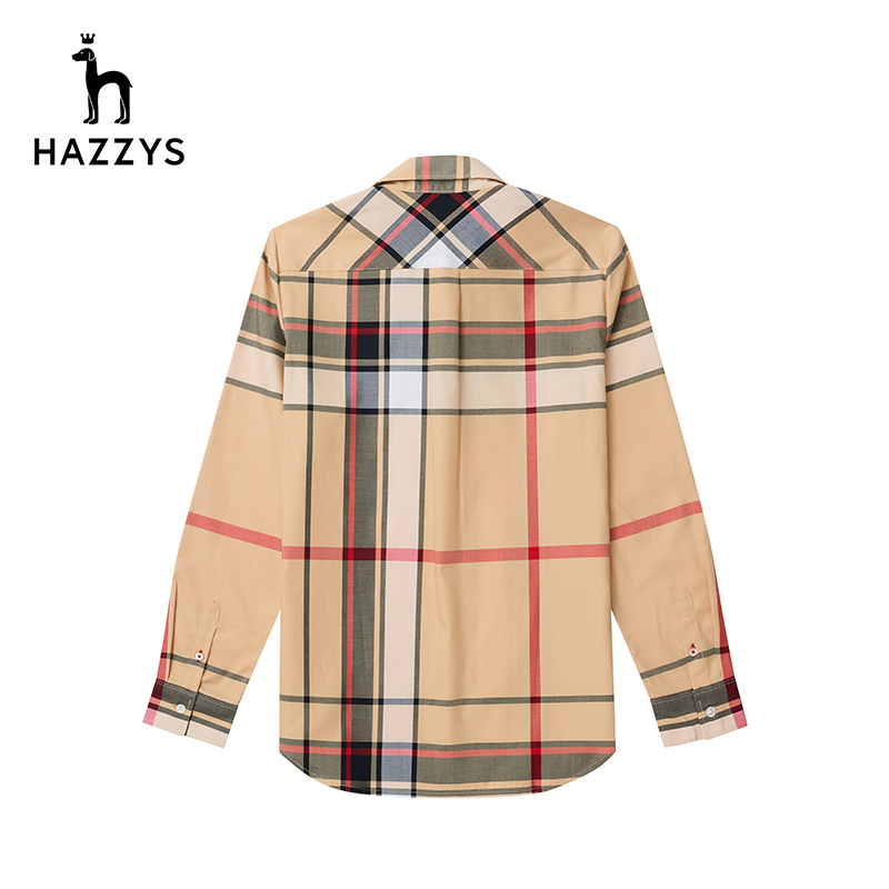 Hazzys哈吉斯格子纯棉长袖女士衬衫春秋内搭衬衣