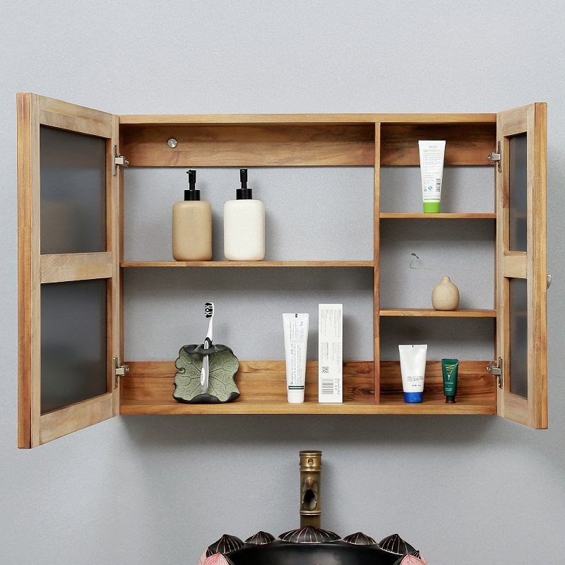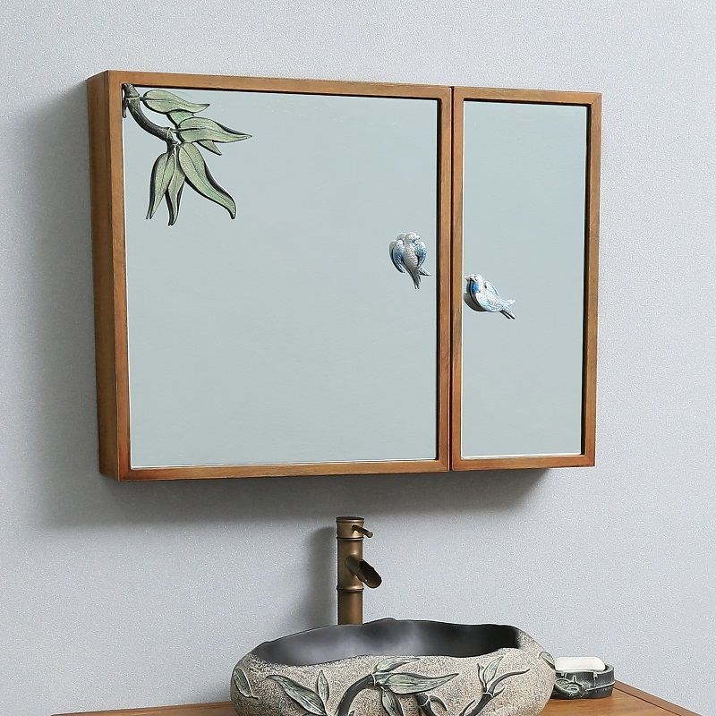 实木中式浴室镜柜带置物r架挂墙式镜柜卫生间小户型洗漱台储物吊