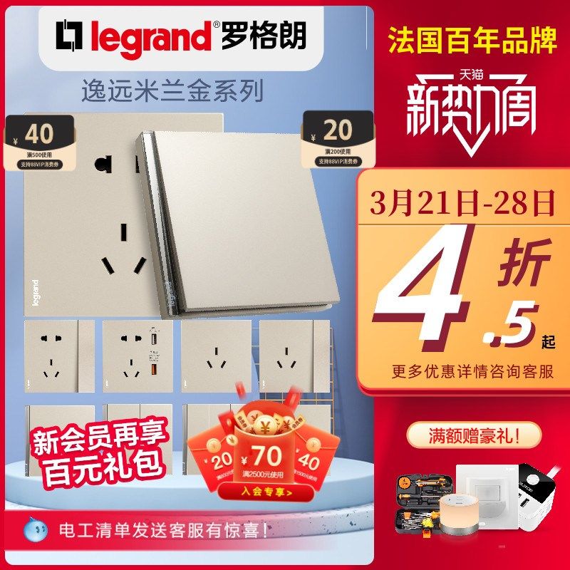罗格朗开关插座面板多孔家用暗装五插开1空调usb逸远米兰金