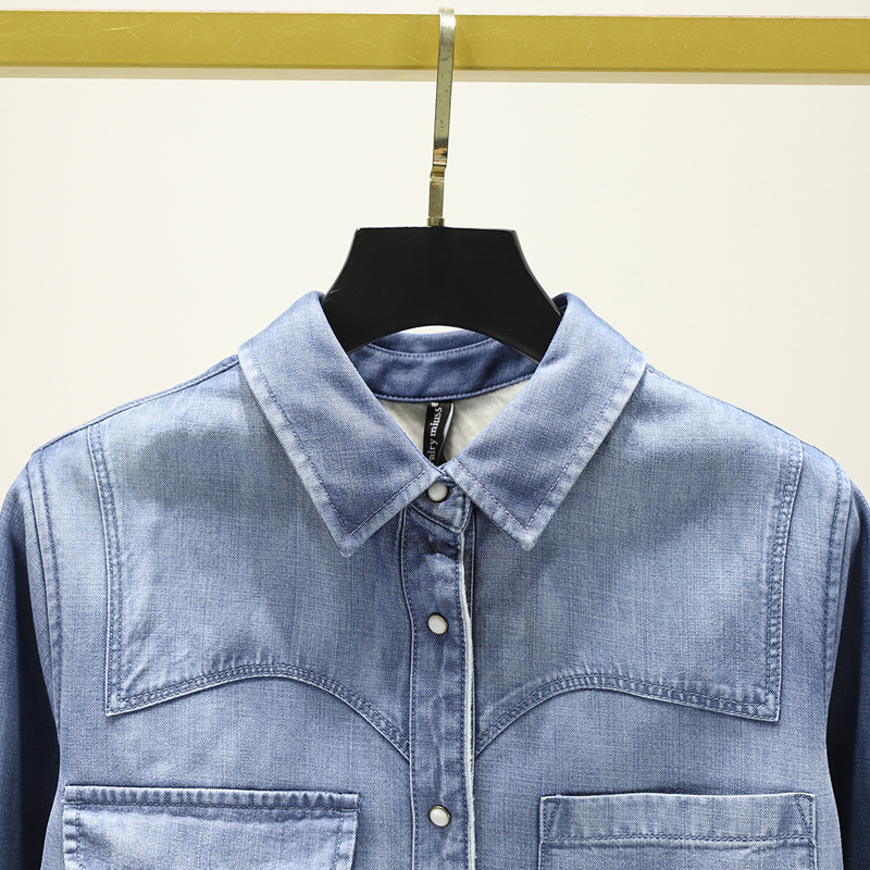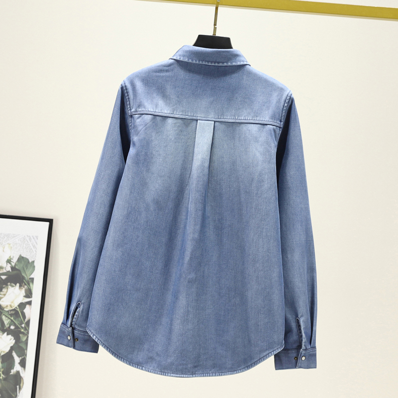 早春新款加绒牛仔衬衫女保暖加厚一体绒显瘦天丝牛仔打底叠穿上衣