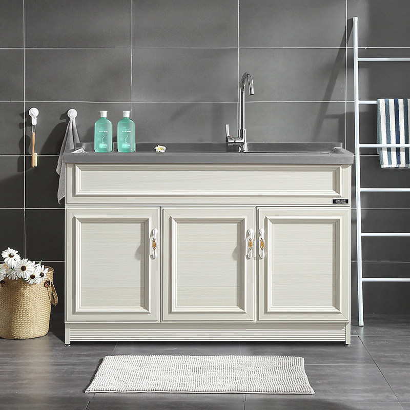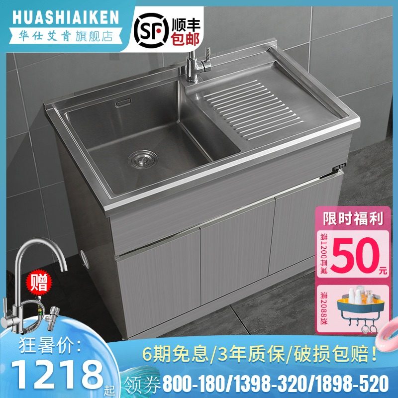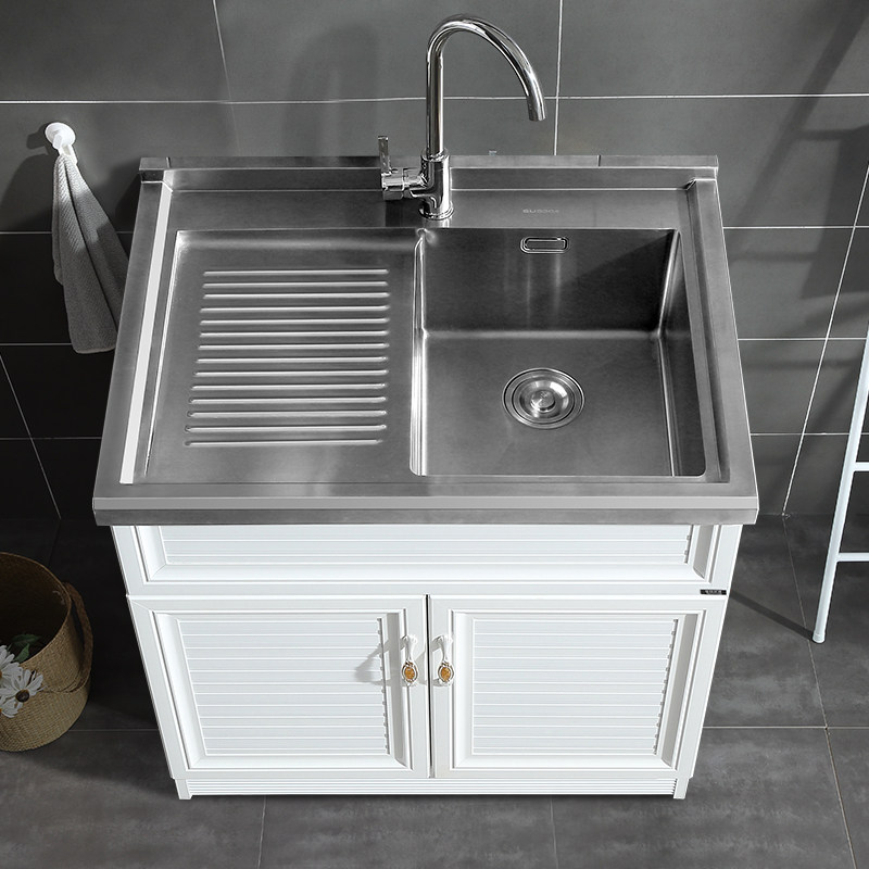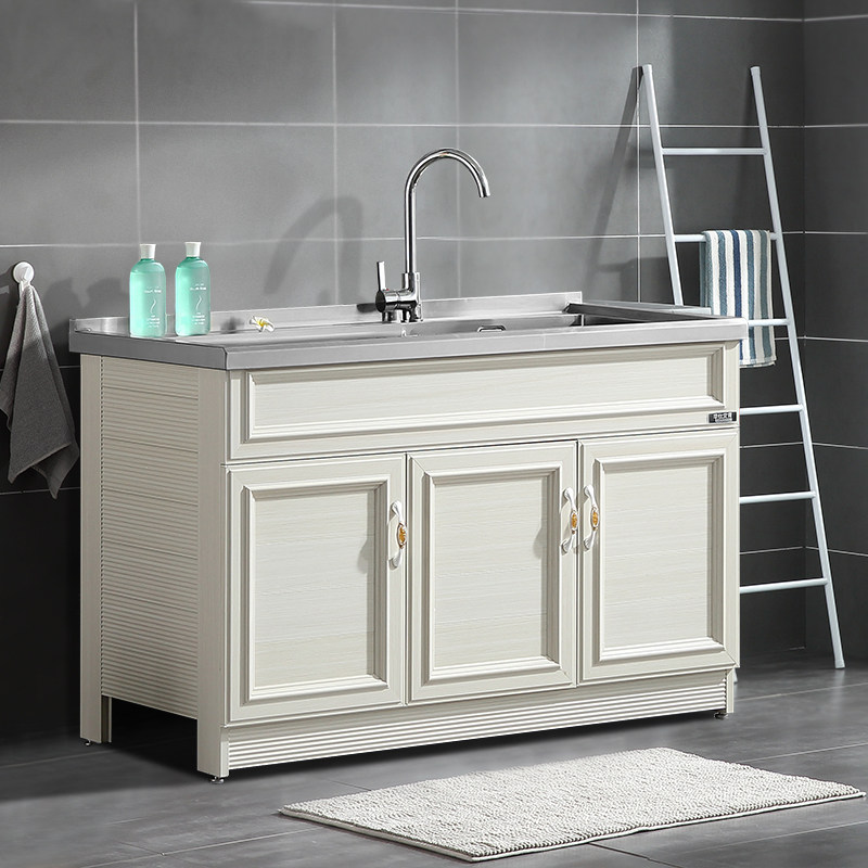 华仕艾肯不锈钢洗衣柜阳台洗衣池带搓衣板304台盆铝合金浴室柜