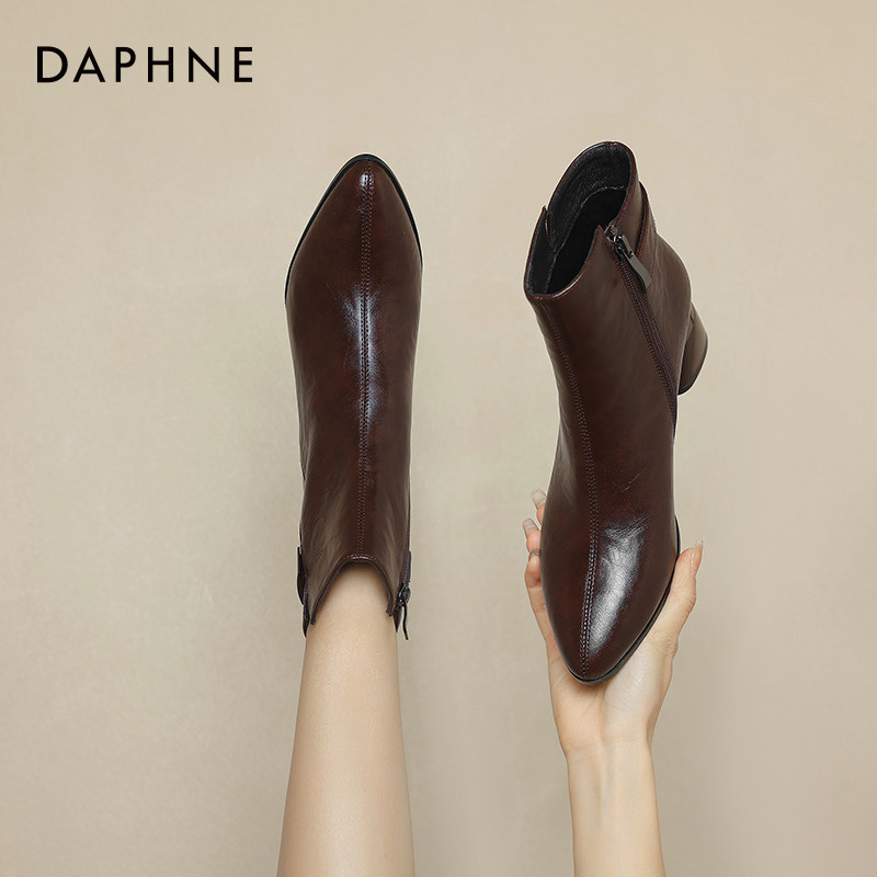 达芙妮高跟短靴女气质尖头马丁靴
