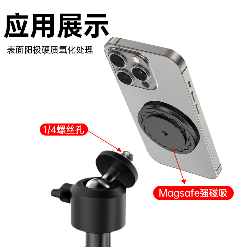 Magsafe磁吸底座手机摄影固定支架1/4标准阿莱接口相机独脚架三角架360度横竖屏旋转4/1通用多功能云台转接头
