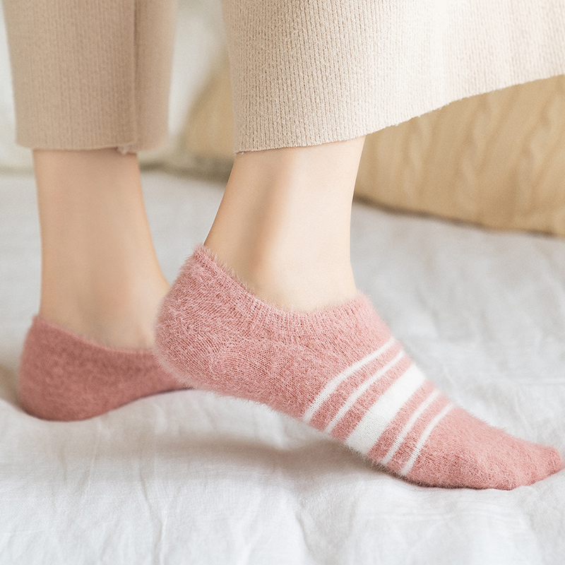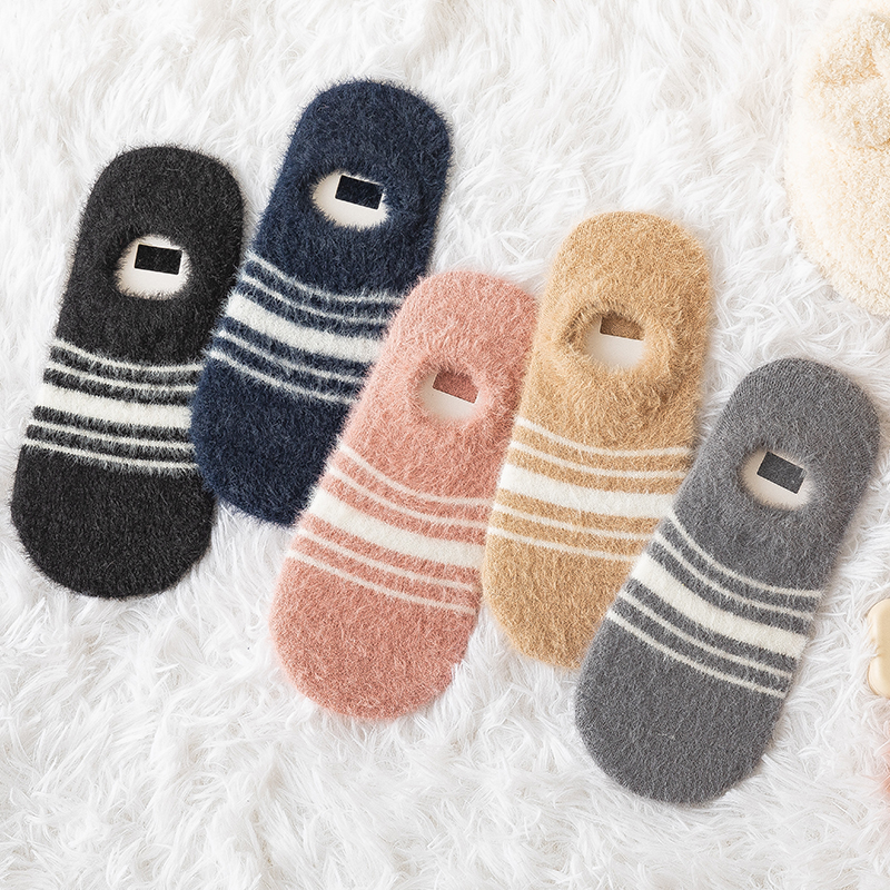 船袜女浅口秋冬季加厚水貂绒保暖条纹短袜硅胶防滑居家地板袜日系