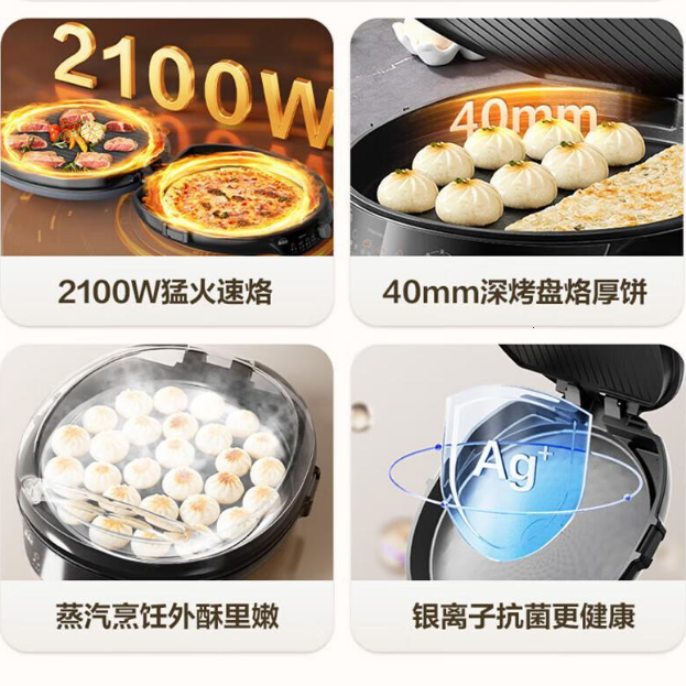 苏泊尔电饼铛煎饼锅煎烤机烙饼锅40mm加深抗菌升降烤盘 JJ38AQ870