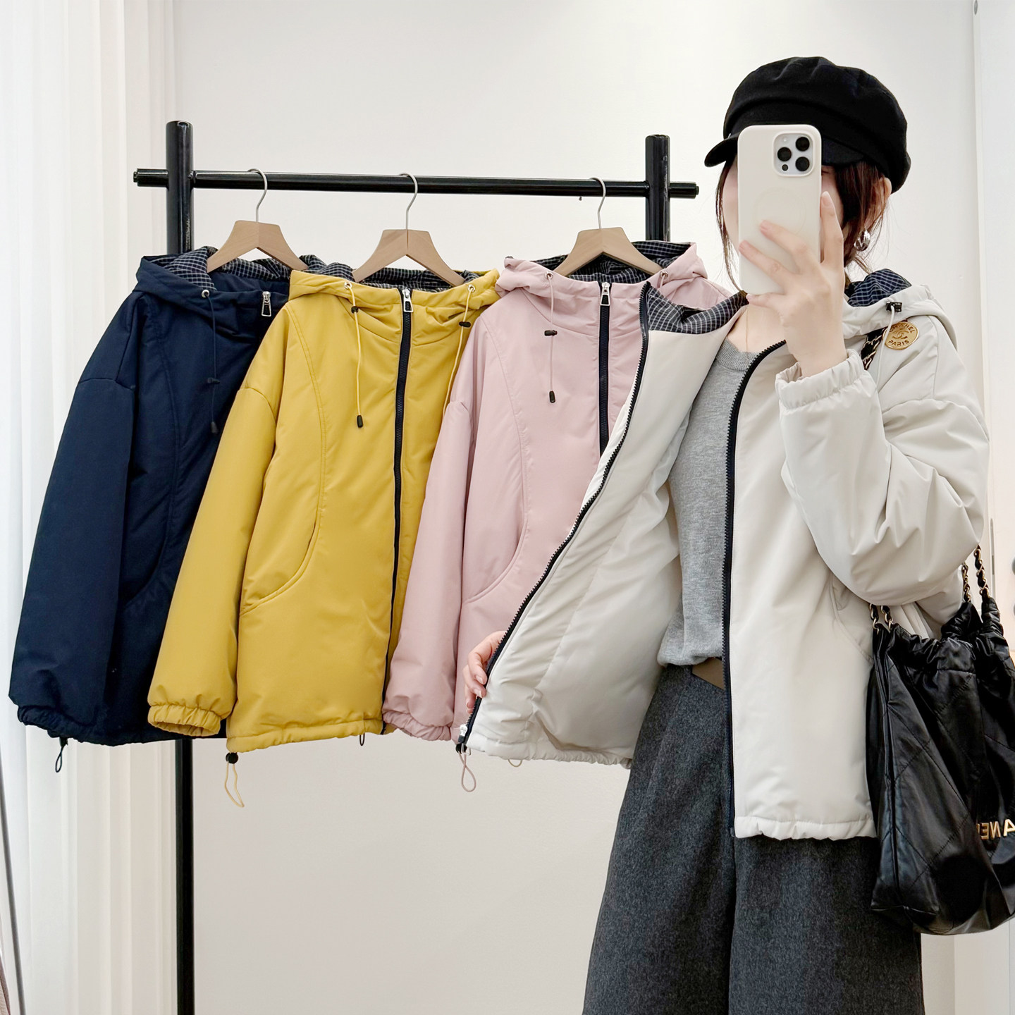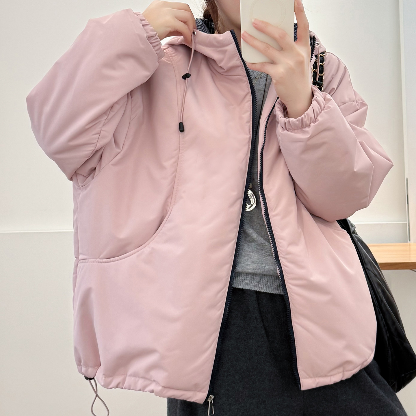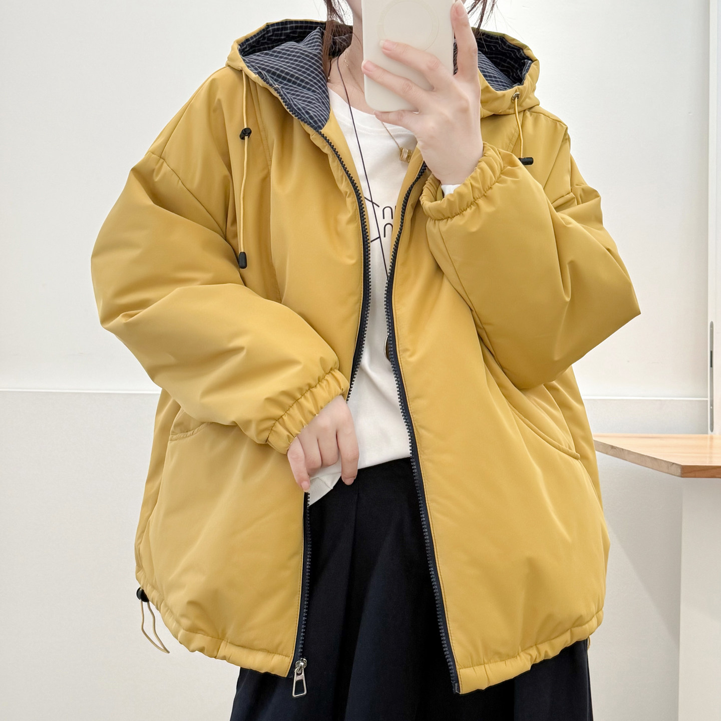简约百搭冬季夹棉连帽外套大码胖mm宽松显瘦棉衣200斤遮肚子棉袄