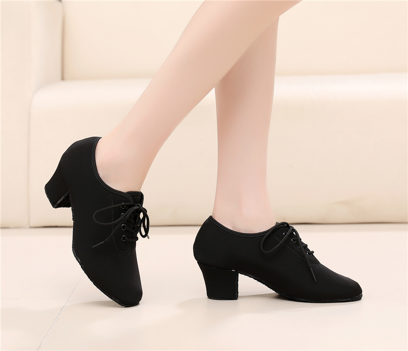 拉丁舞鞋女童成年女士中跟教师鞋软底交谊广场跳舞鞋牛津布舞蹈鞋
