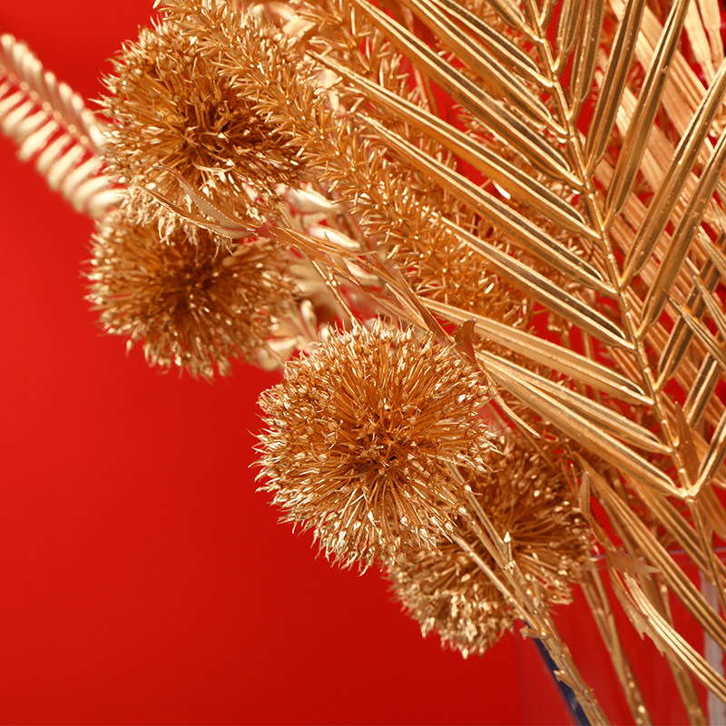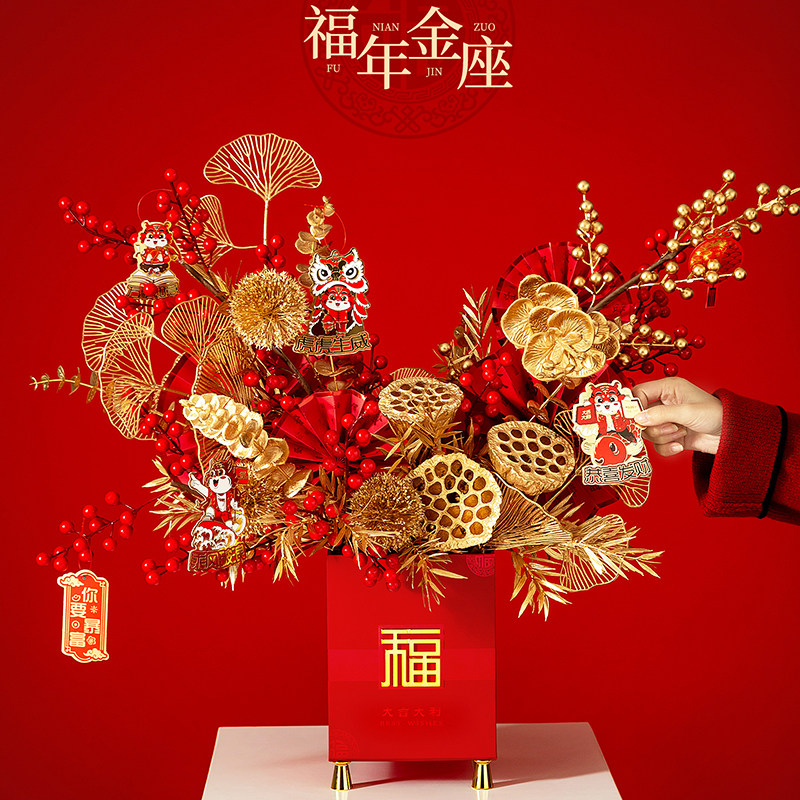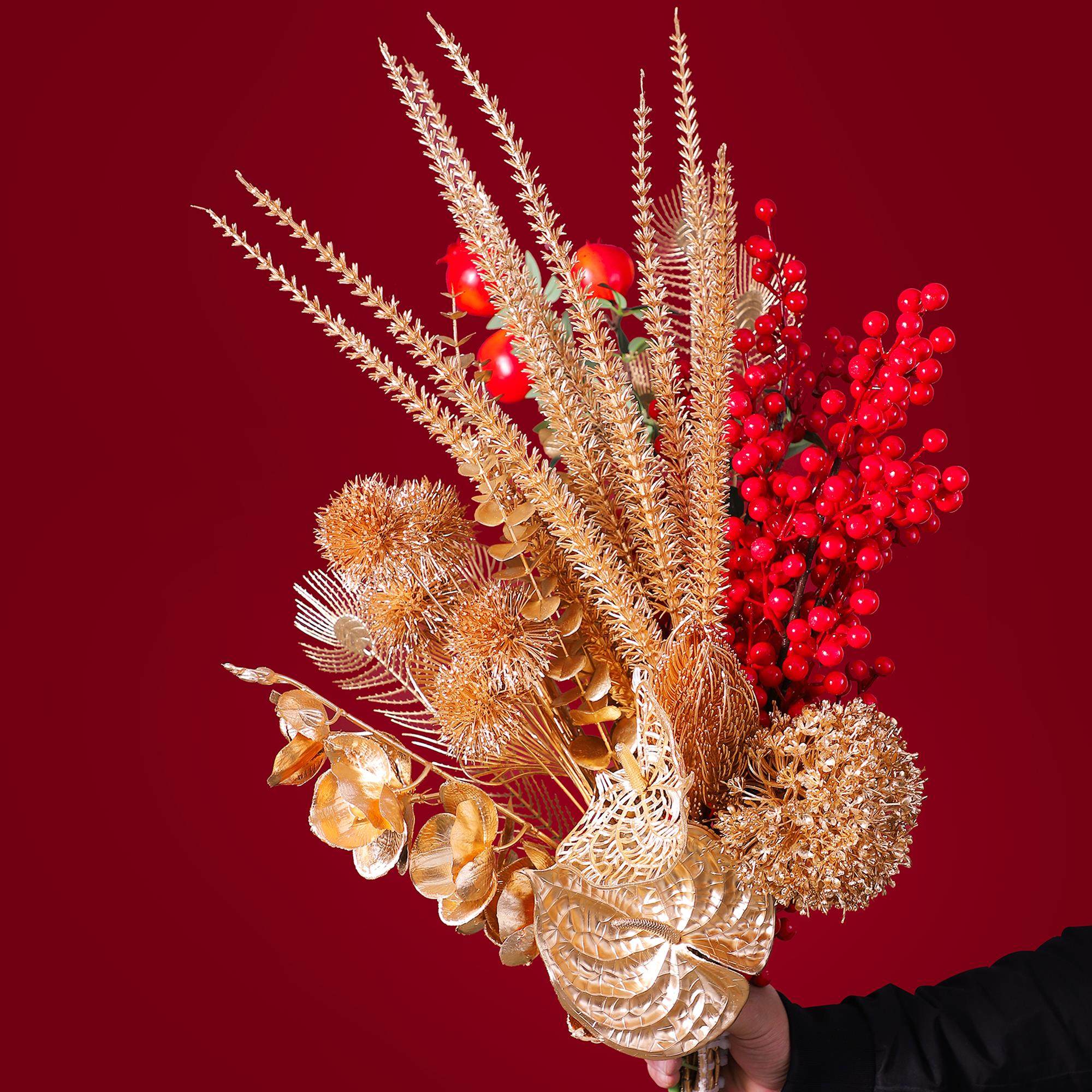 新年宵花福桶材料金色尤加利扇叶银杏叶子冬青发财果仿真插花装饰