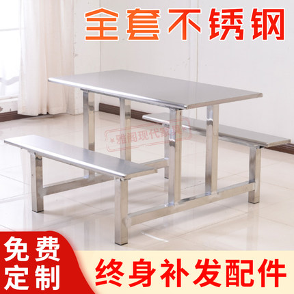 学校学生食堂餐桌椅组合不锈钢餐桌4人8人工地员工餐桌椅快餐桌