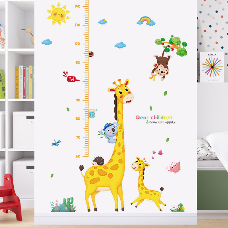 卡通身高测量墙纸宝宝量身高尺墙贴小孩儿童身高贴纸可移除不伤墙