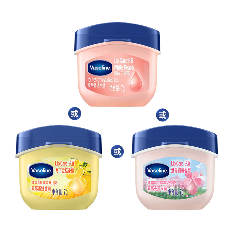 凡士林小Q罐润唇膏白桃香滋润保湿唇膜锁水修护淡化唇纹嘴部保养