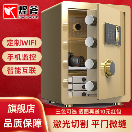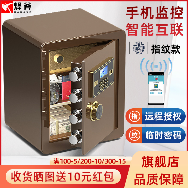 焊斧全钢保险柜家用小型入墙指纹电子密码防盗报警办公保险箱