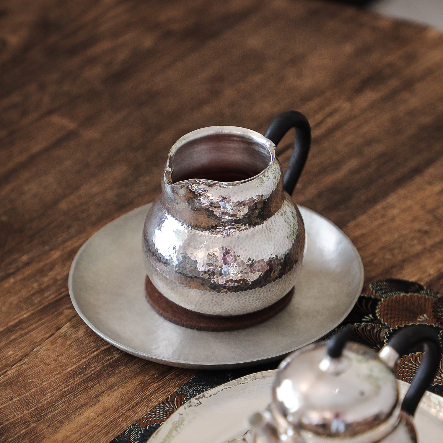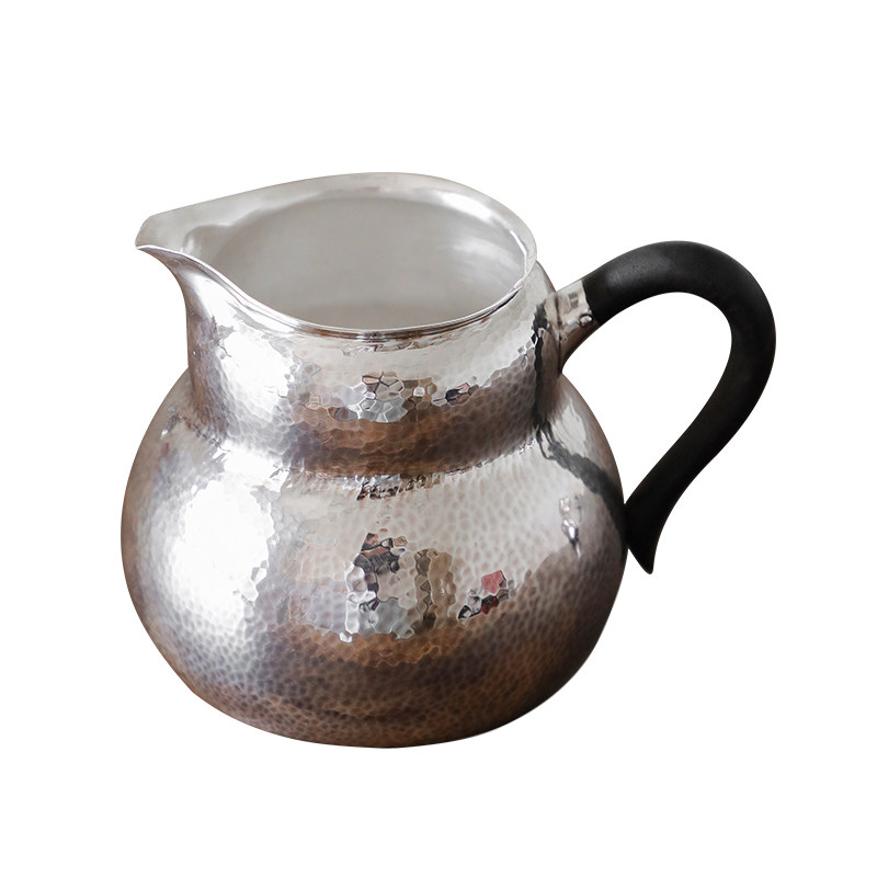 纯银时代 做旧葫芦公道杯足银999手工防烫木把匀杯分茶器220ml