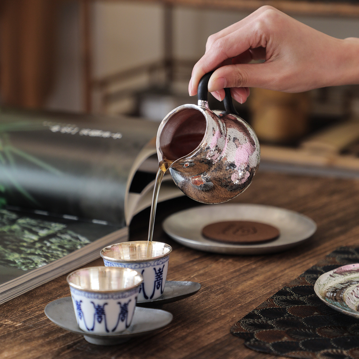纯银时代公道杯纯手工木把防烫
