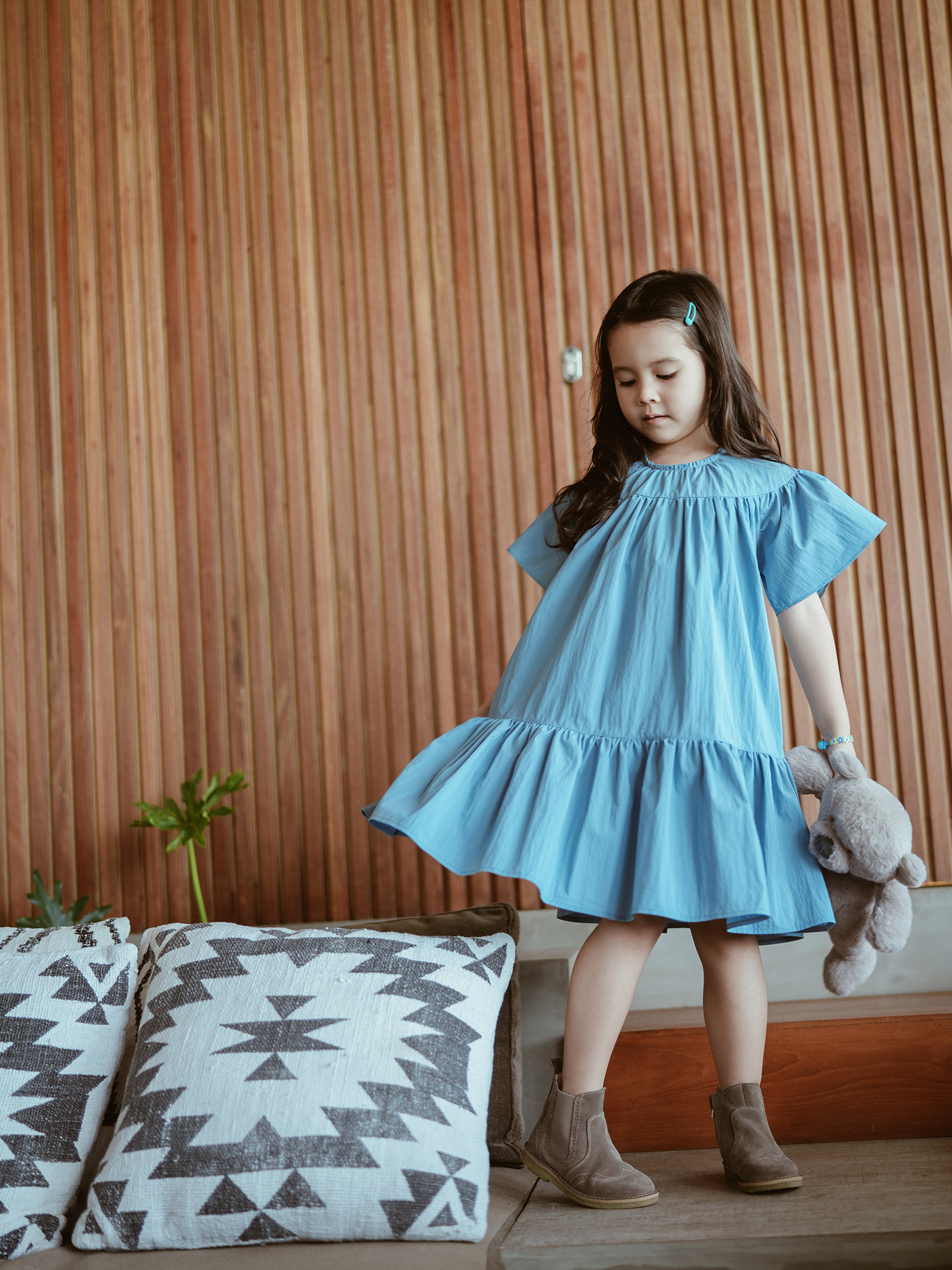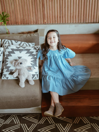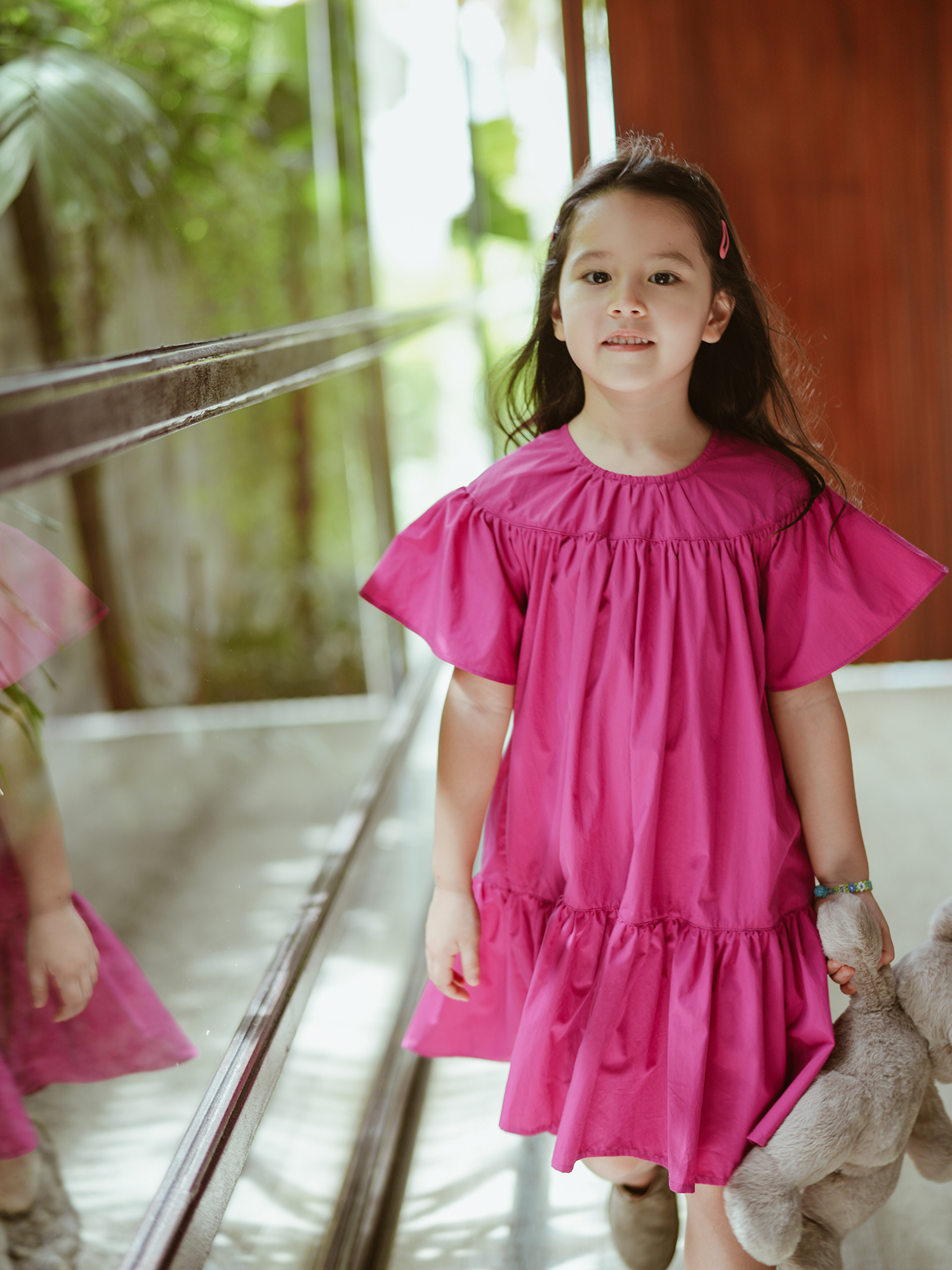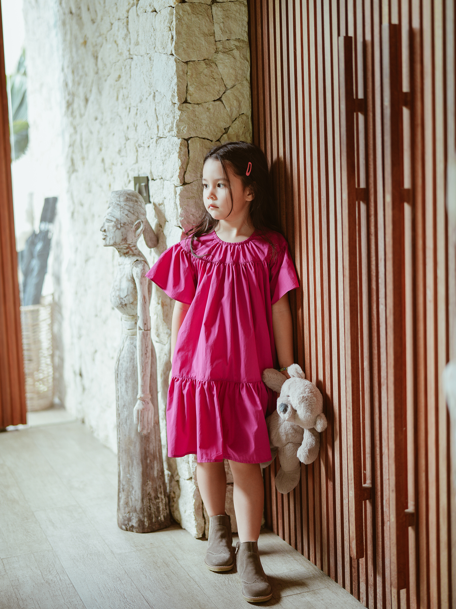 史豌豆女童连衣裙2024夏装新款洋气儿童飞袖纯色公主裙女宝宝裙子