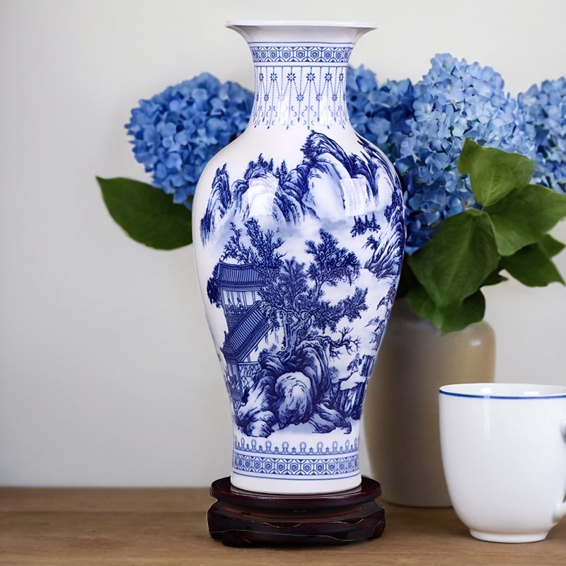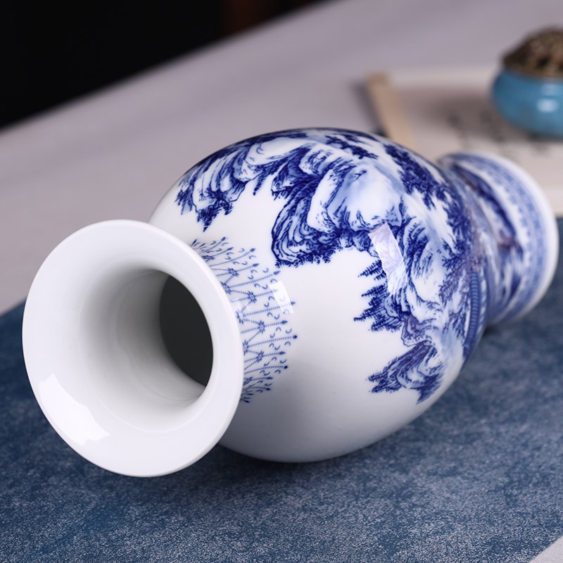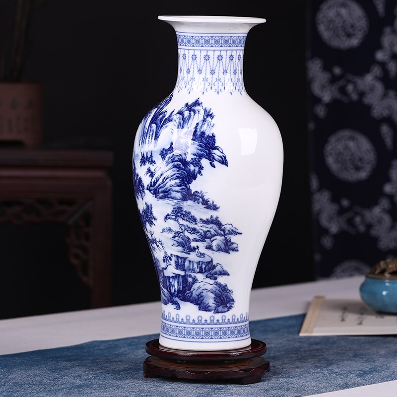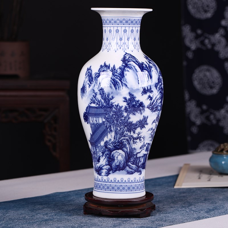 博古架小花瓶摆件家居装饰品青花瓷玄关现代中式富贵竹干花插花