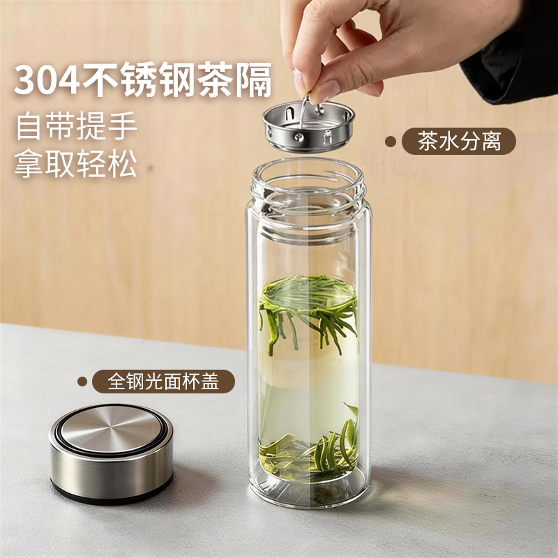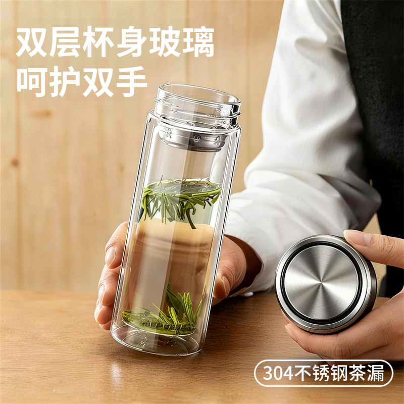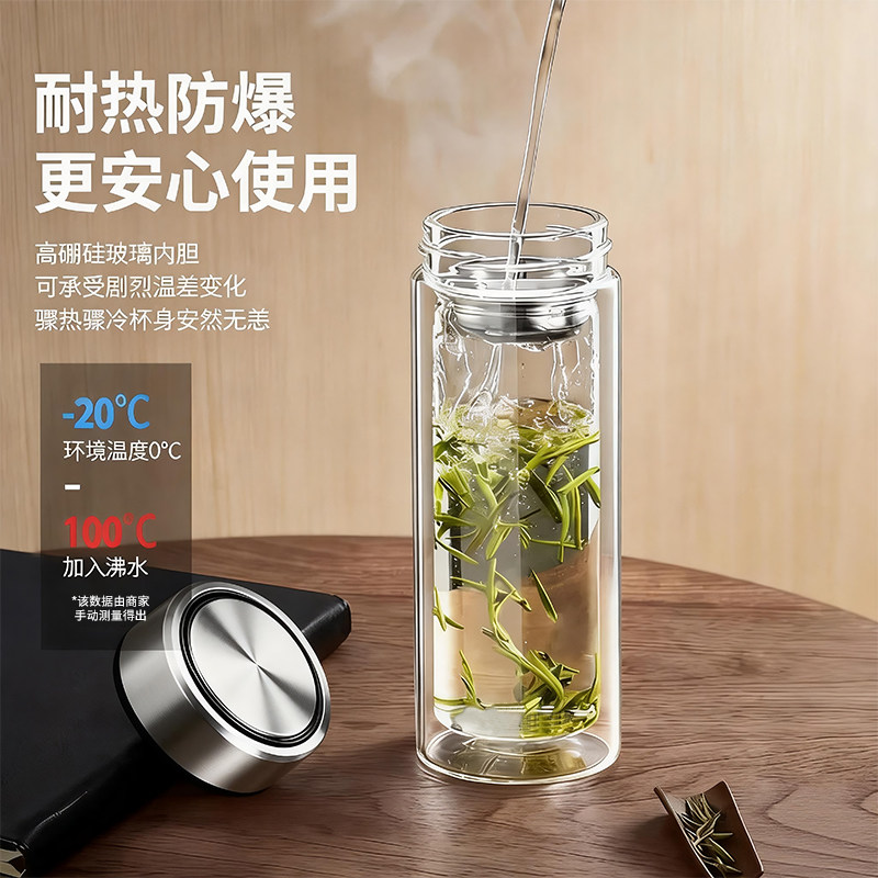 大容量双层高硼硅玻璃杯耐热防爆耐高温泡茶杯子办公车载男士茶杯