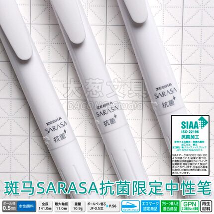 日本Zebra斑马sarasa抗菌限定中性笔纯白国誉三方联名红羽毛黑笔