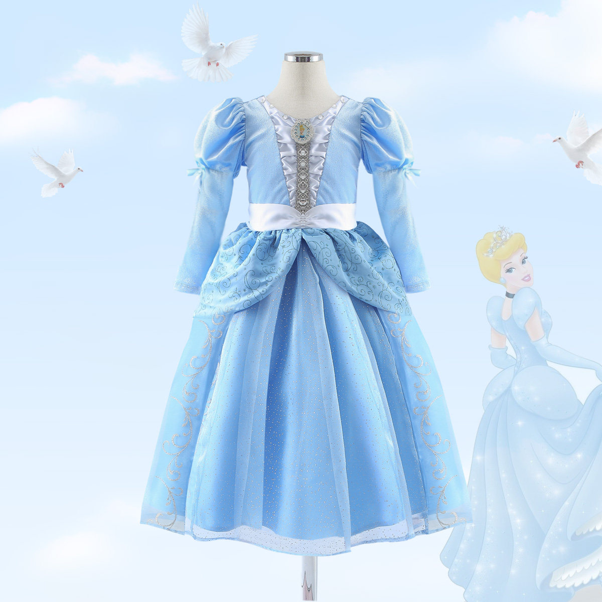 迪士尼童装女童睡美人公主裙秋冬礼服裙演出服儿童短袖爱洛连衣裙