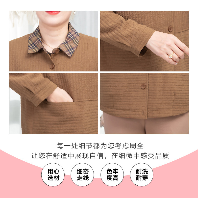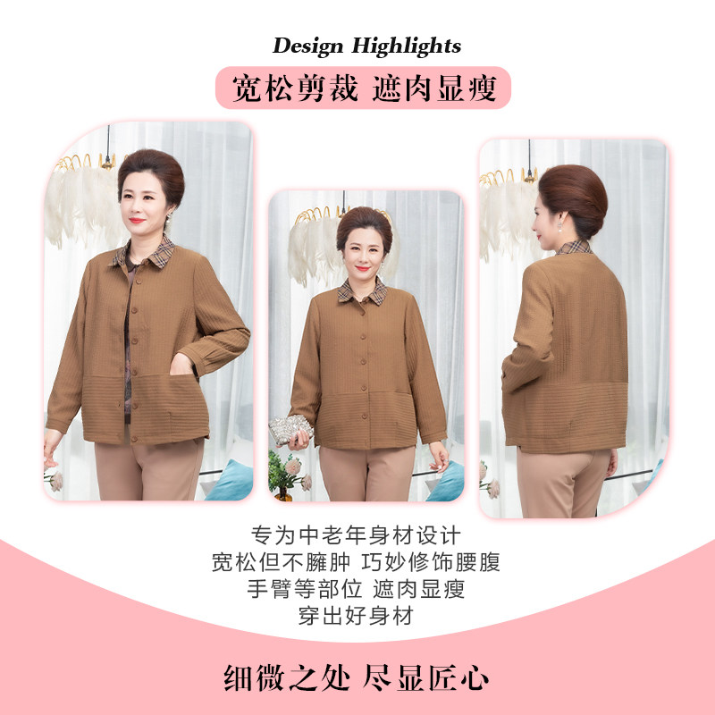 依佈2026春装新款格子拼接外套中老年时尚妈妈装经典百搭开衫上衣