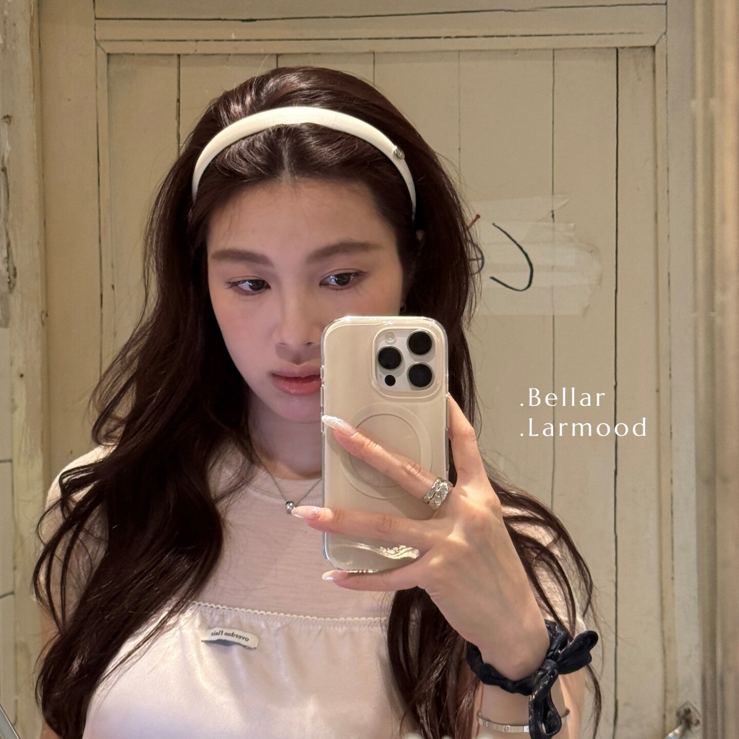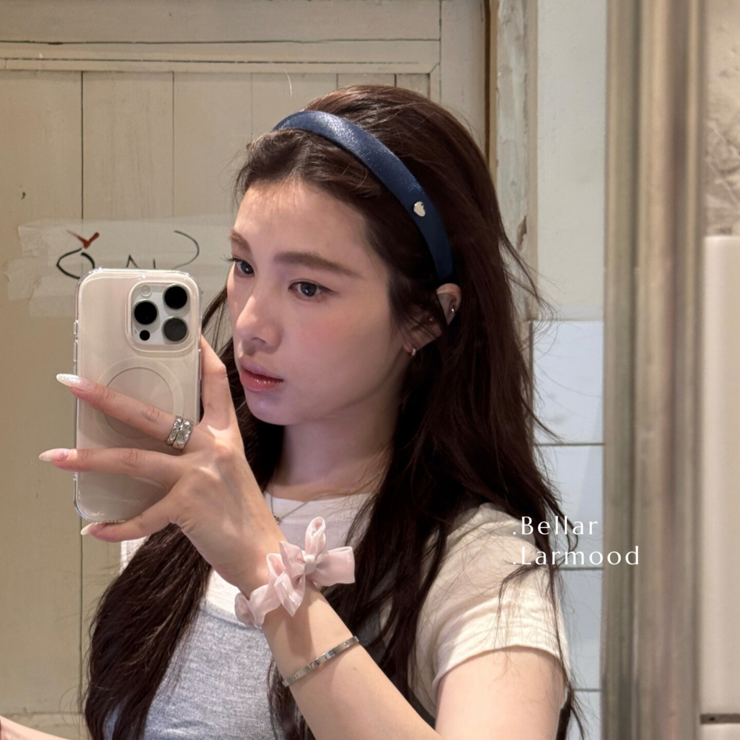 Bellar /larmood deepblue&pearl 经典复古少女爱心圆片发箍
