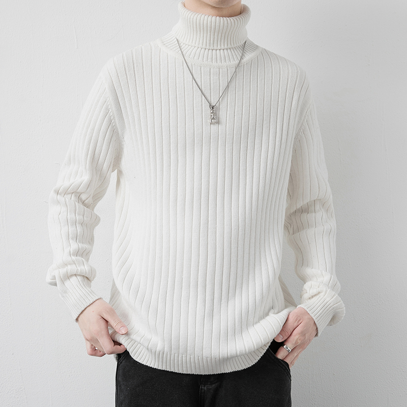 2024秋冬季新款加绒加厚翻领亲肤针织打底衫男士百搭纯色高领毛衣