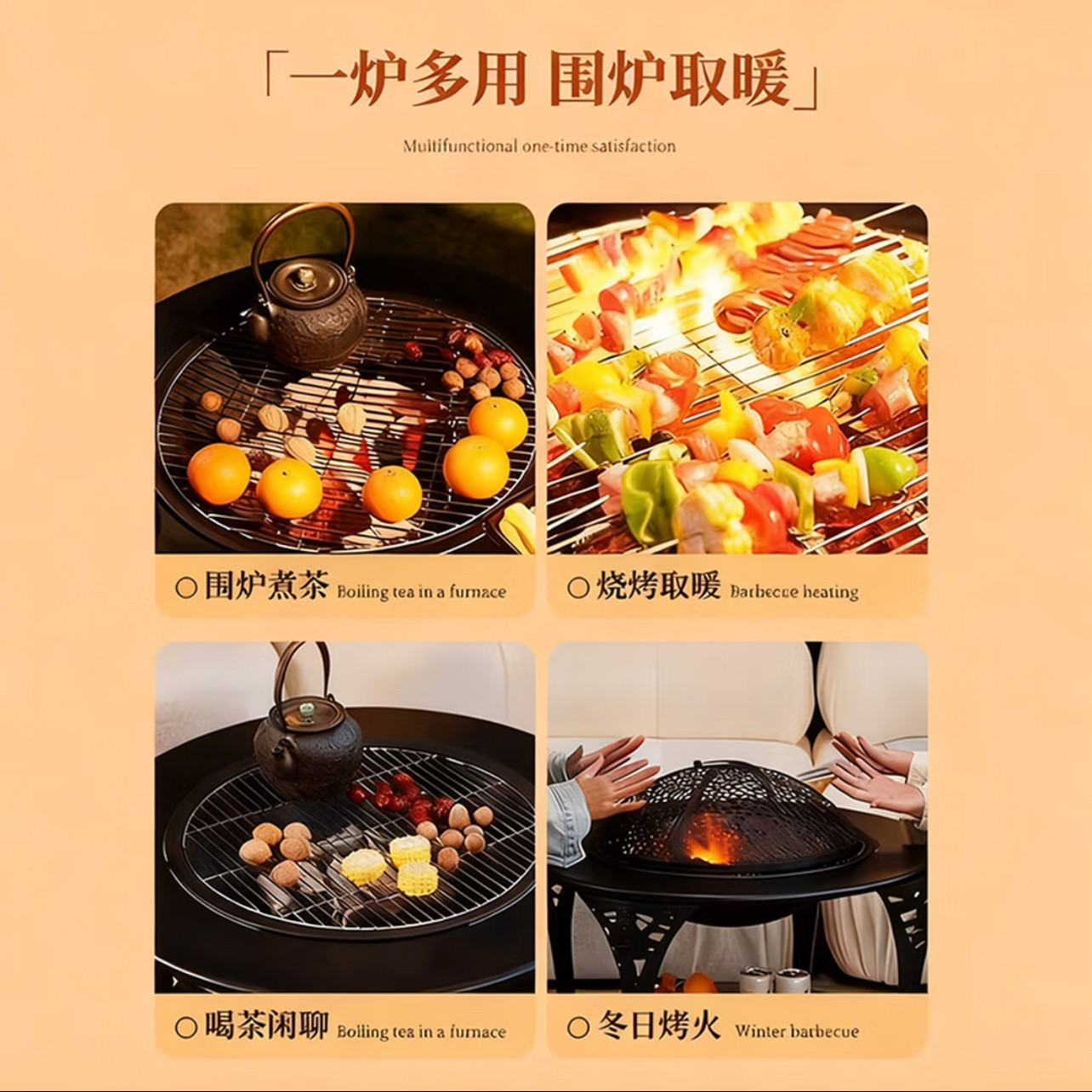 围炉煮茶室内取暖烧烤炉野外野营烤肉烧烤架子家用户外烧烤新品