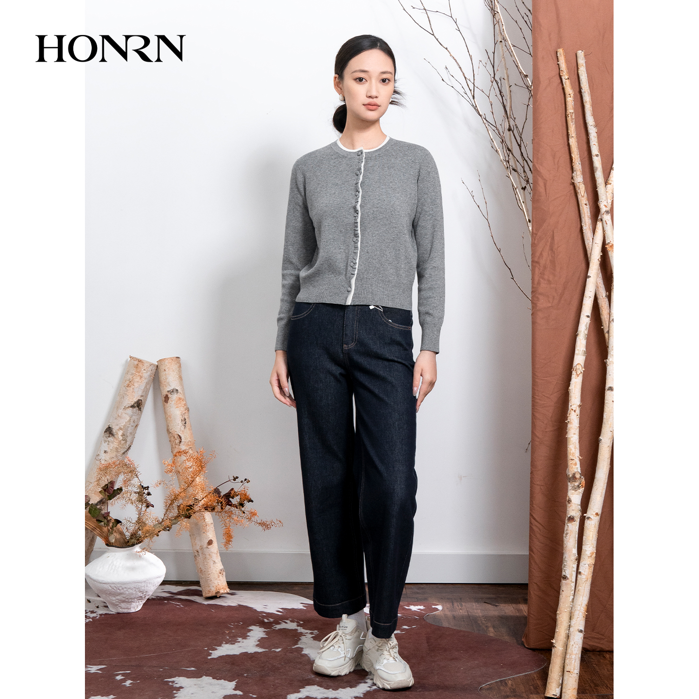 HONRN/红人假两件圆领羊毛衣混纺针织衫开衫上衣女秋冬HK59OM029
