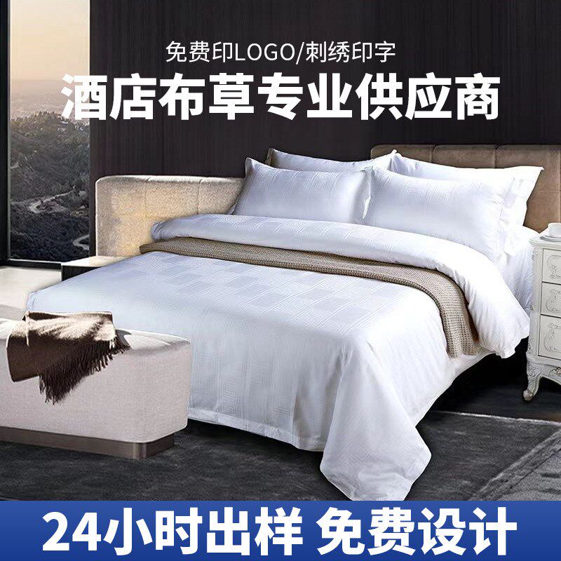 酒店布草60支大提花宾馆床上用品民宿白色床单被套酒店四件套