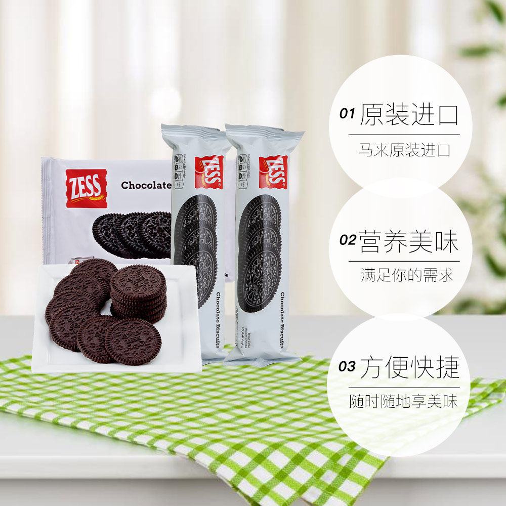 【自营】杰思巧克力饼干马来西亚zess进口无夹心奥奥饼干休闲零食