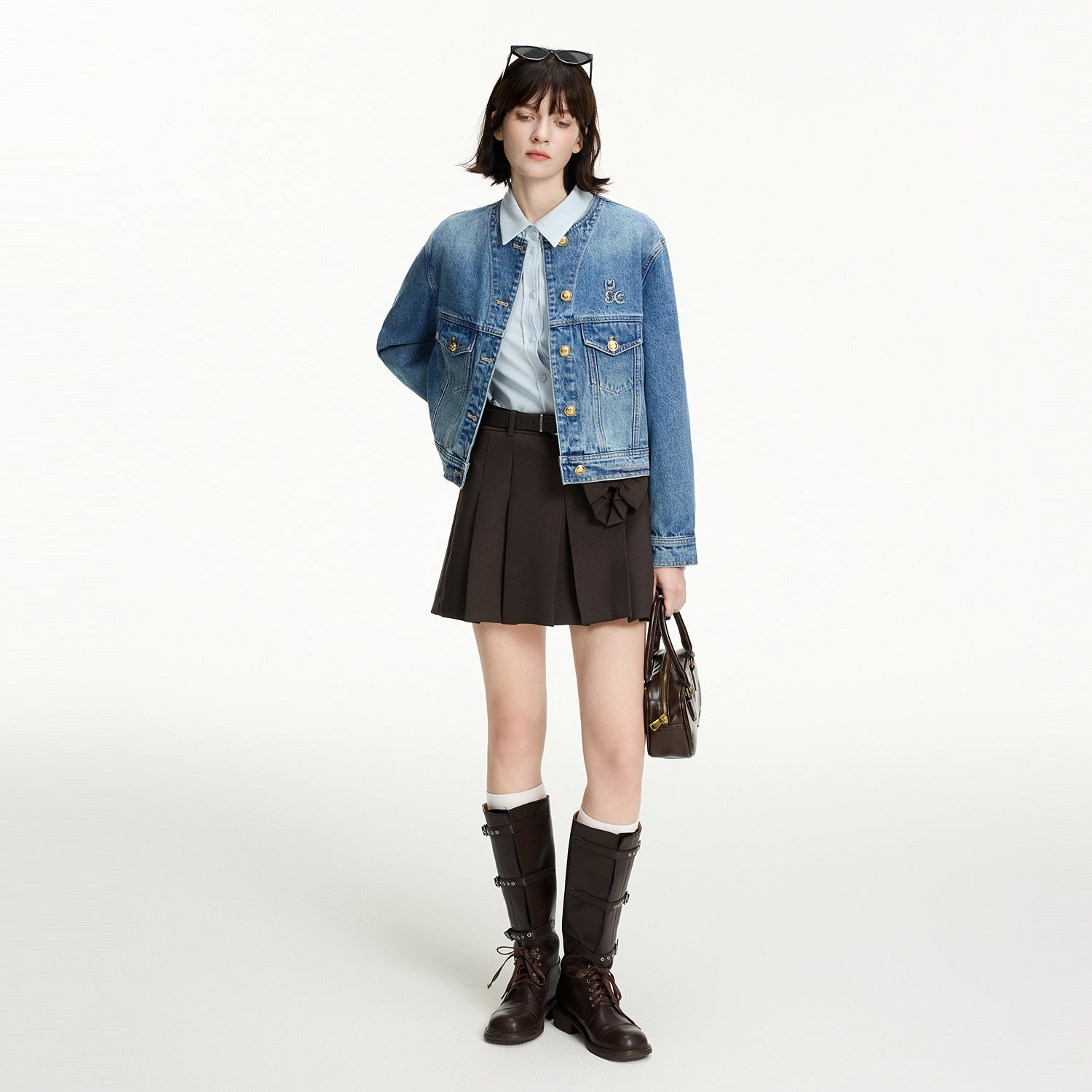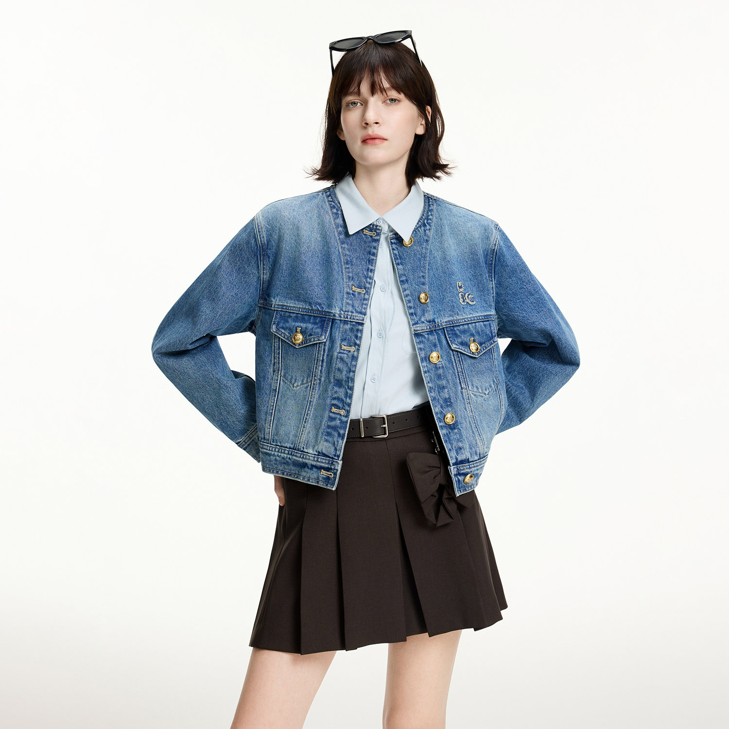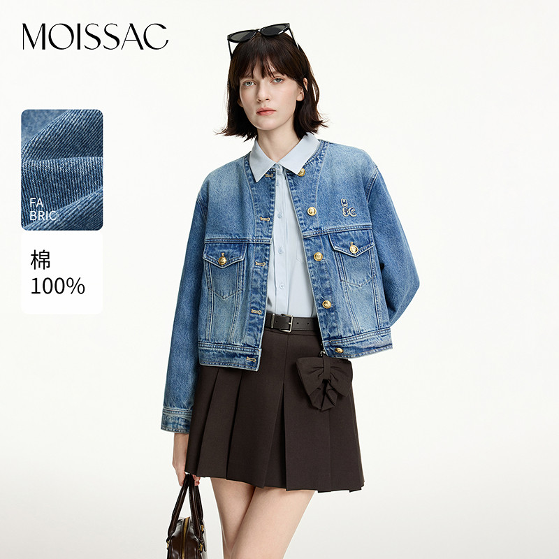 【七七酱直播间】商场同款 摩萨克2026春新款休闲刺绣牛仔外套