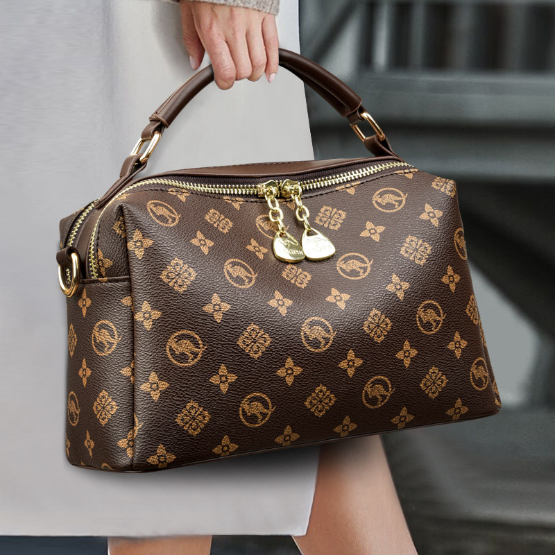 袋鼠轻奢女包2025年秋冬新款手提斜挎包休闲波士顿真皮包单肩包
