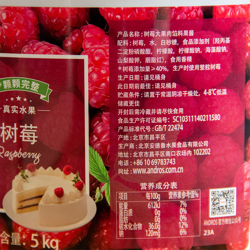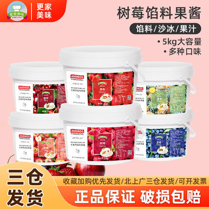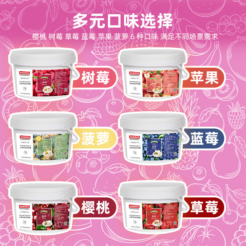 安德鲁草莓馅料果酱5kg桶装蓝莓果肉树莓覆盆子樱桃菠萝苹果酱料