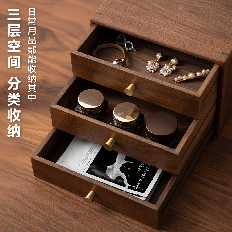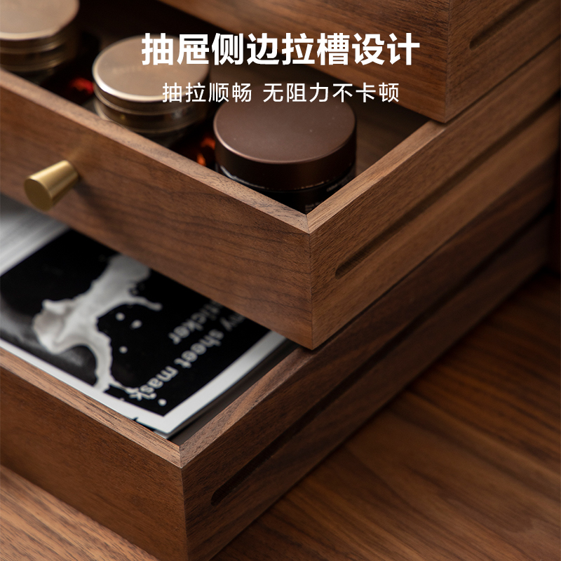 梵瀚 实木多层抽屉式桌面收纳盒家用办公室文件杂物桌上储物盒