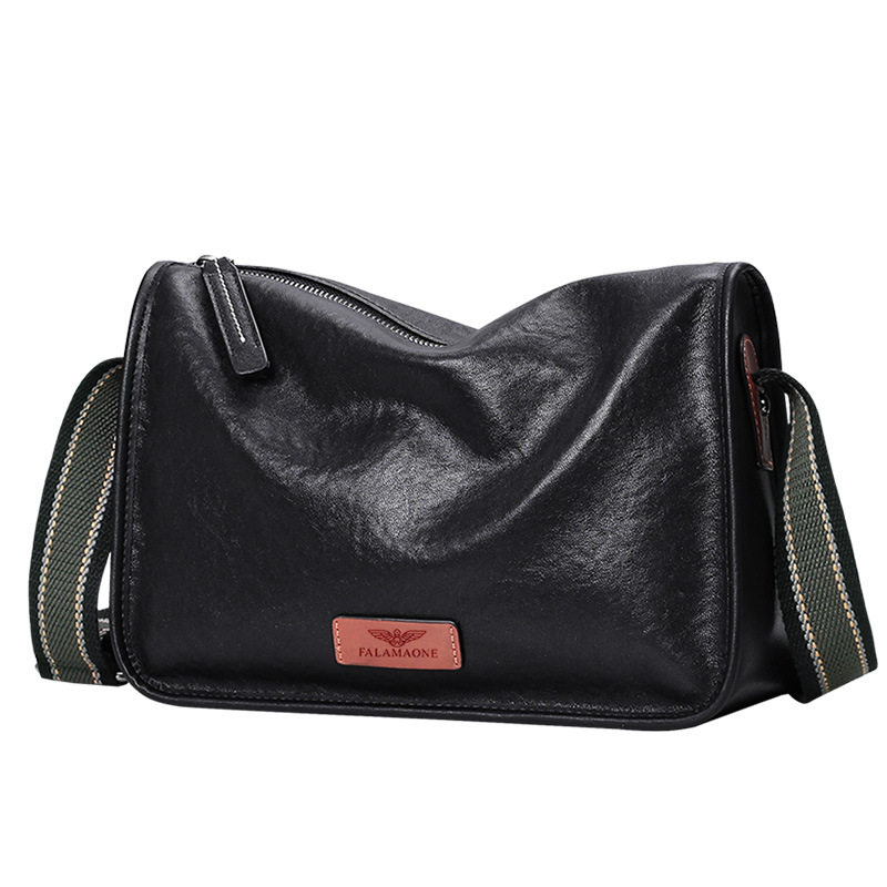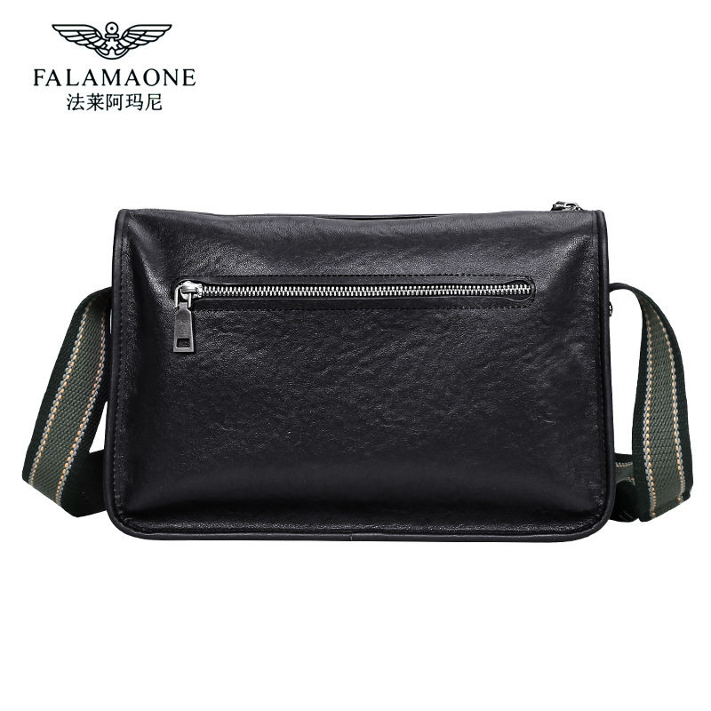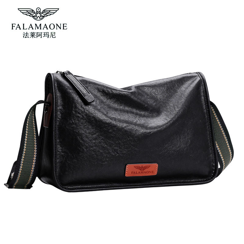 法莱阿玛尼黑色单肩包男士真皮斜跨包休闲时尚通勤小背包百搭牛皮