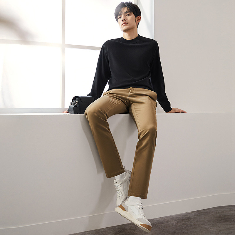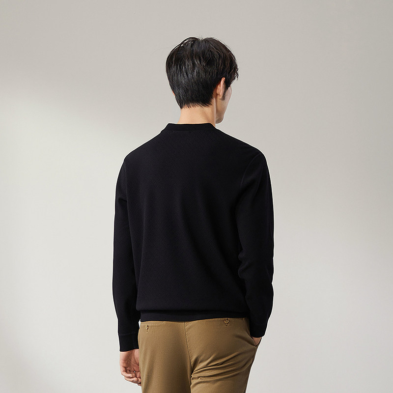 【加绒】柒牌加厚卫衣男2024冬季新款男士时尚提花保暖圆领上衣潮