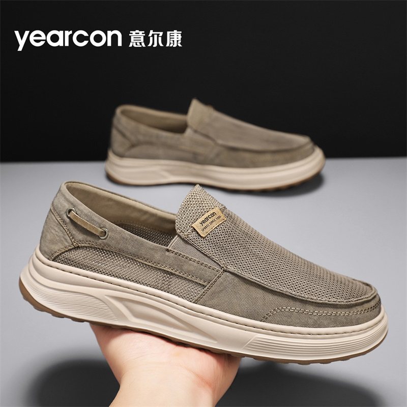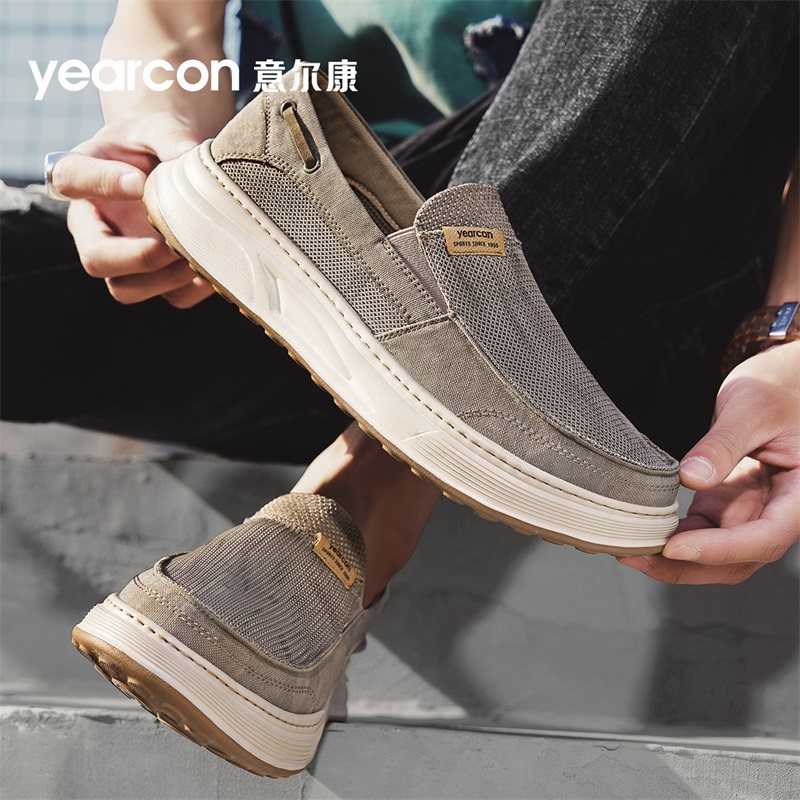 意尔康男鞋2025新款夏季透气休闲鞋子男士百搭轻便一脚蹬休闲布鞋